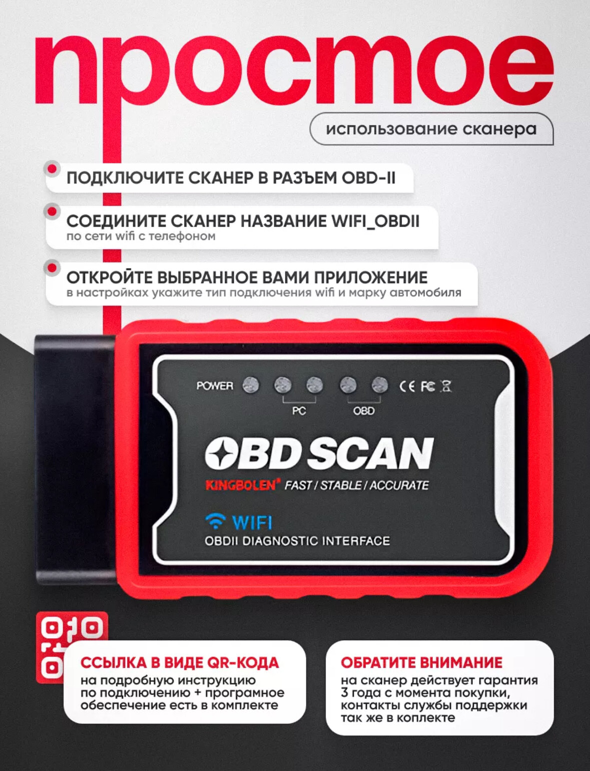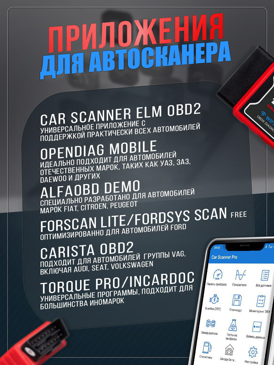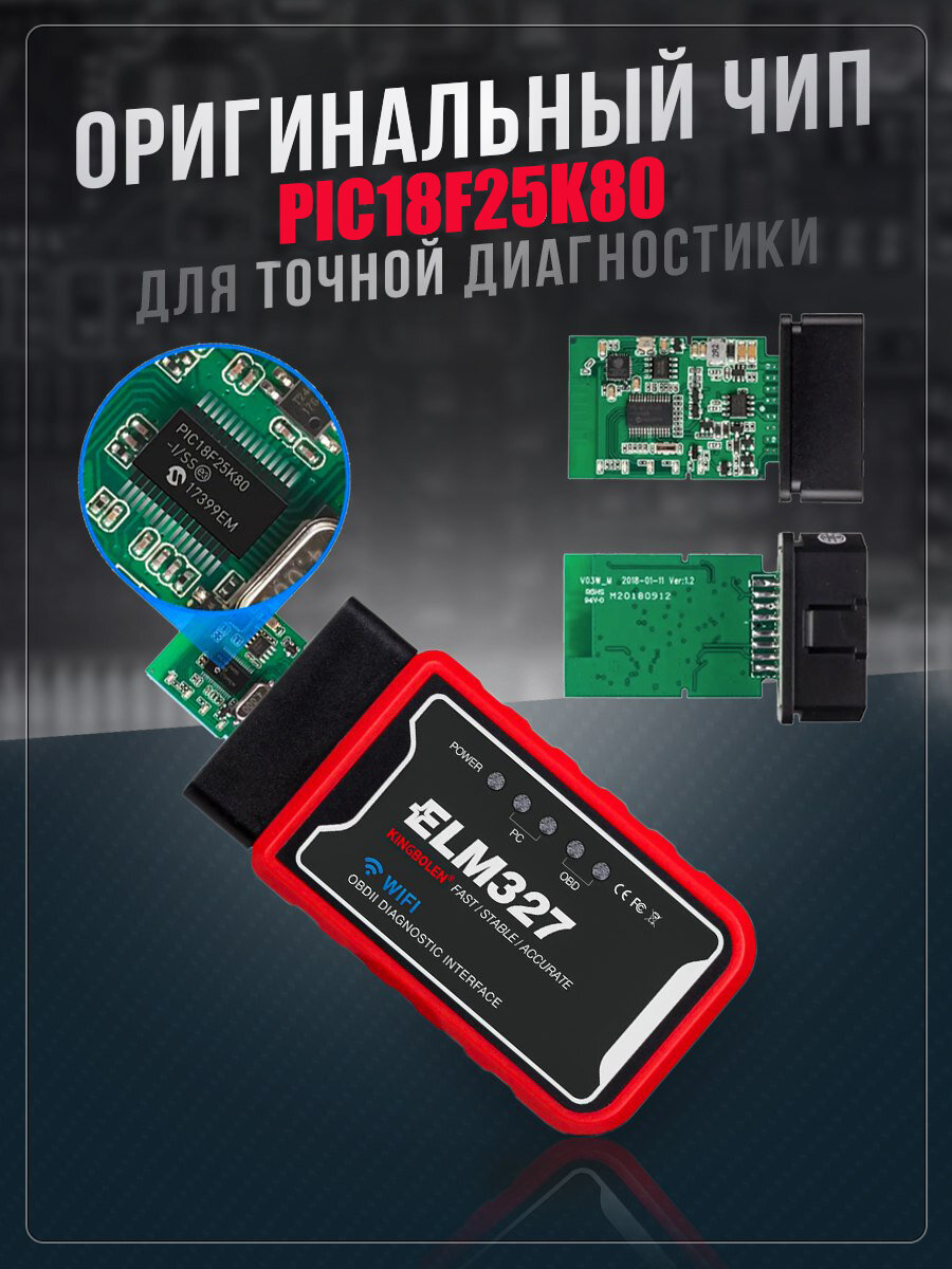 Диагностический сканер ELM327 OBD SCAN Wi-Fi v 1.5 для Android и iPhone, чип PIC25K80 интересное: