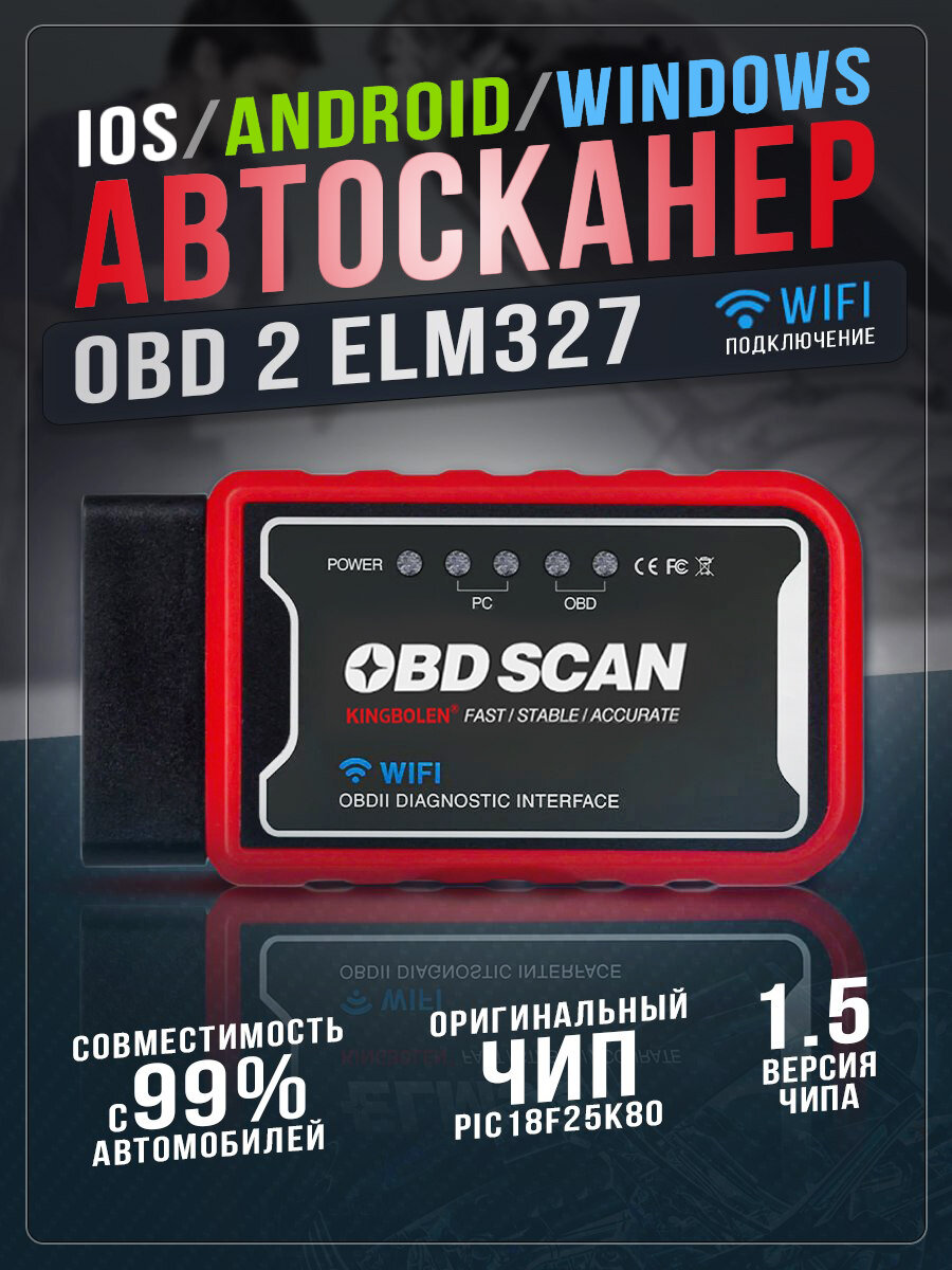 Купить Диагностический сканер ELM327 OBD SCAN Wi-Fi v 1.5 для Android и iPhone, чип PIC25K80