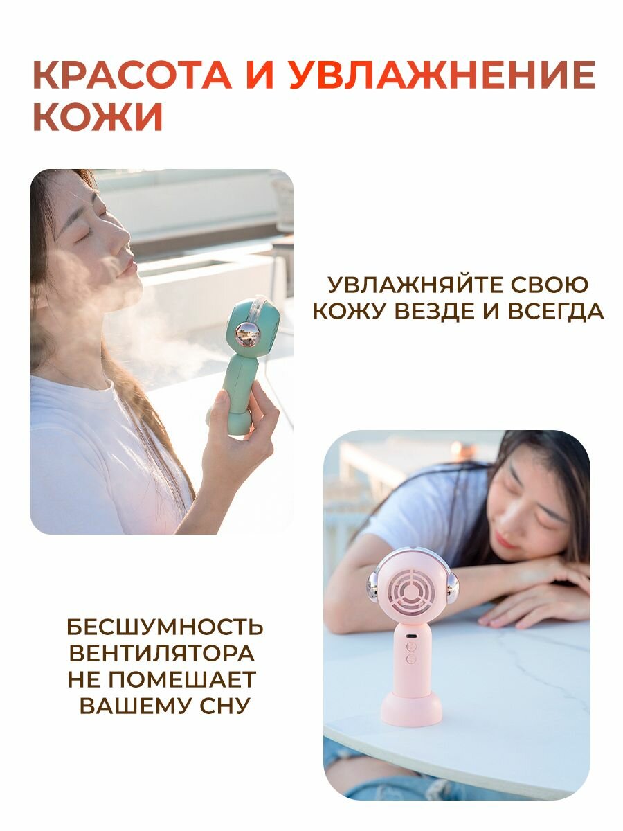 Портативный беспроводной мини-вентилятор с увлажнителем лица ручной BlueStar 3 Speed Type - C, розовый