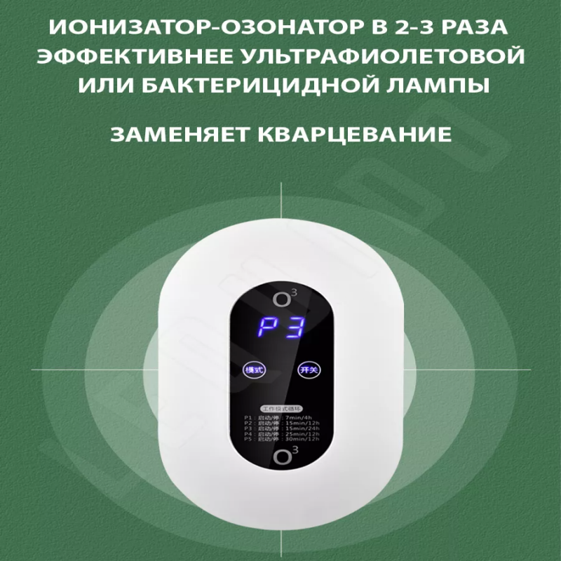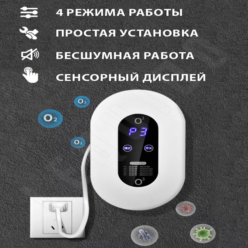 Озонатор 500 мг/час, 220AC/12DC с таймером. Очиститель и очиститель воздуха, воды, продуктов и холодильника, охват до 50 м2. Озонатор для дома.