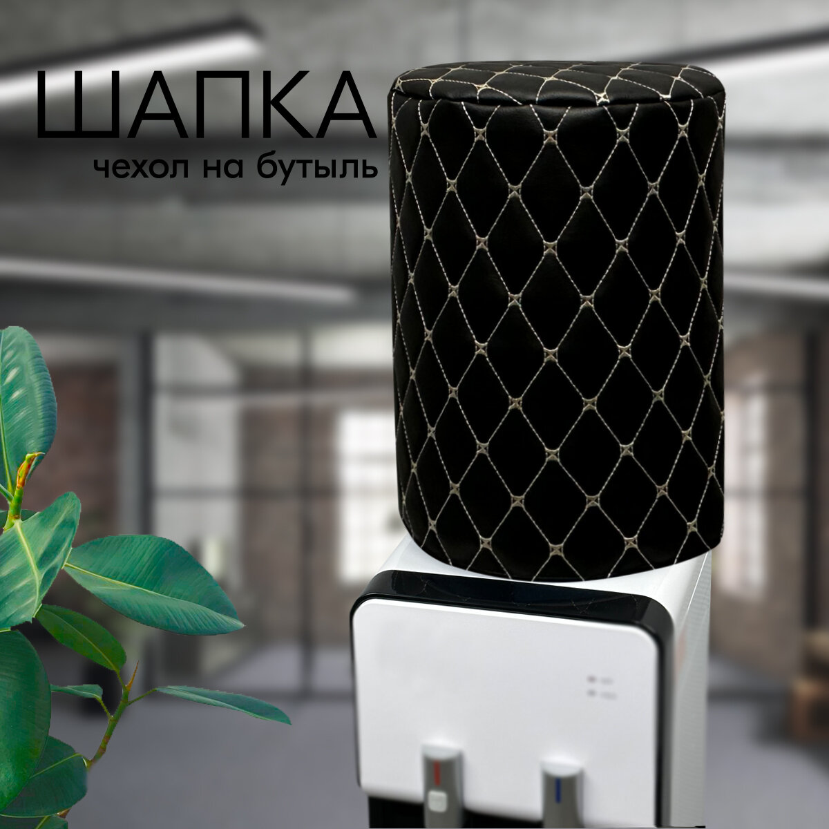 Чехол на бутыль 19л шапка Черный Экокожа интересное: