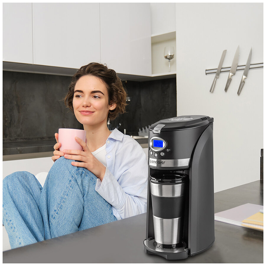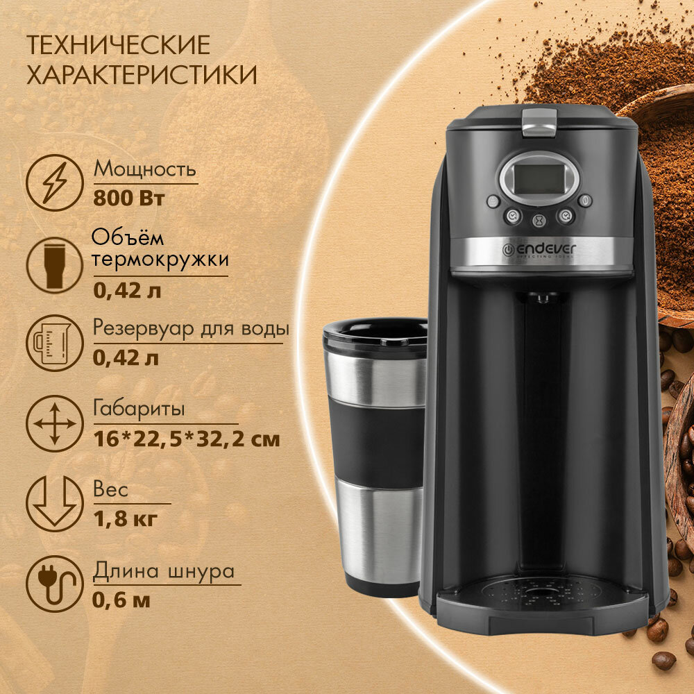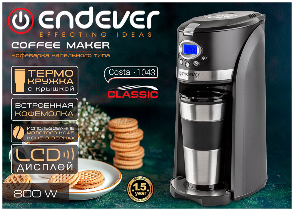 Кофеварка капельная электрическая с кофемолкой и термокружкой ENDEVER COSTA-1043