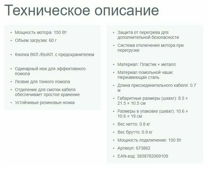 Кофемолка Gorenje SMK150E (150Вт, 60г) интересное: