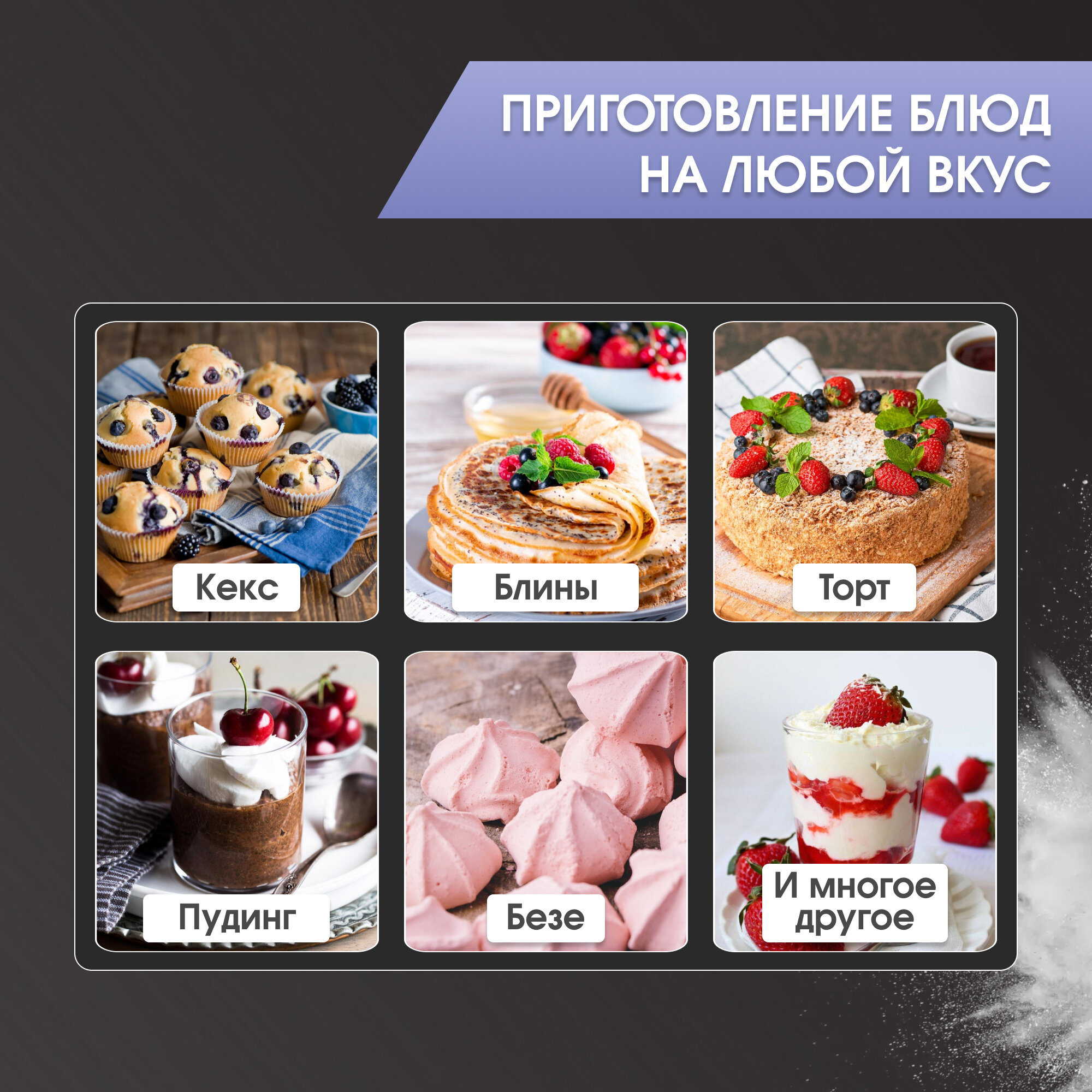| Насадки | венчик для взбивания / крючки для замешивания теста |
