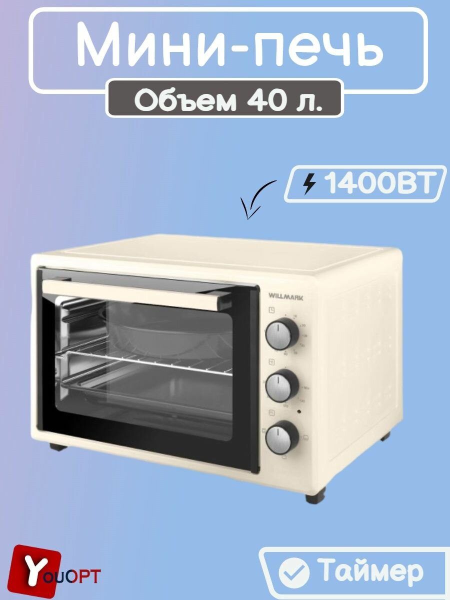 Мини-печь WILLMARK WOF-405B, 1400 Вт, 40 л, таймер, до 300°С, бежевая интересное:
