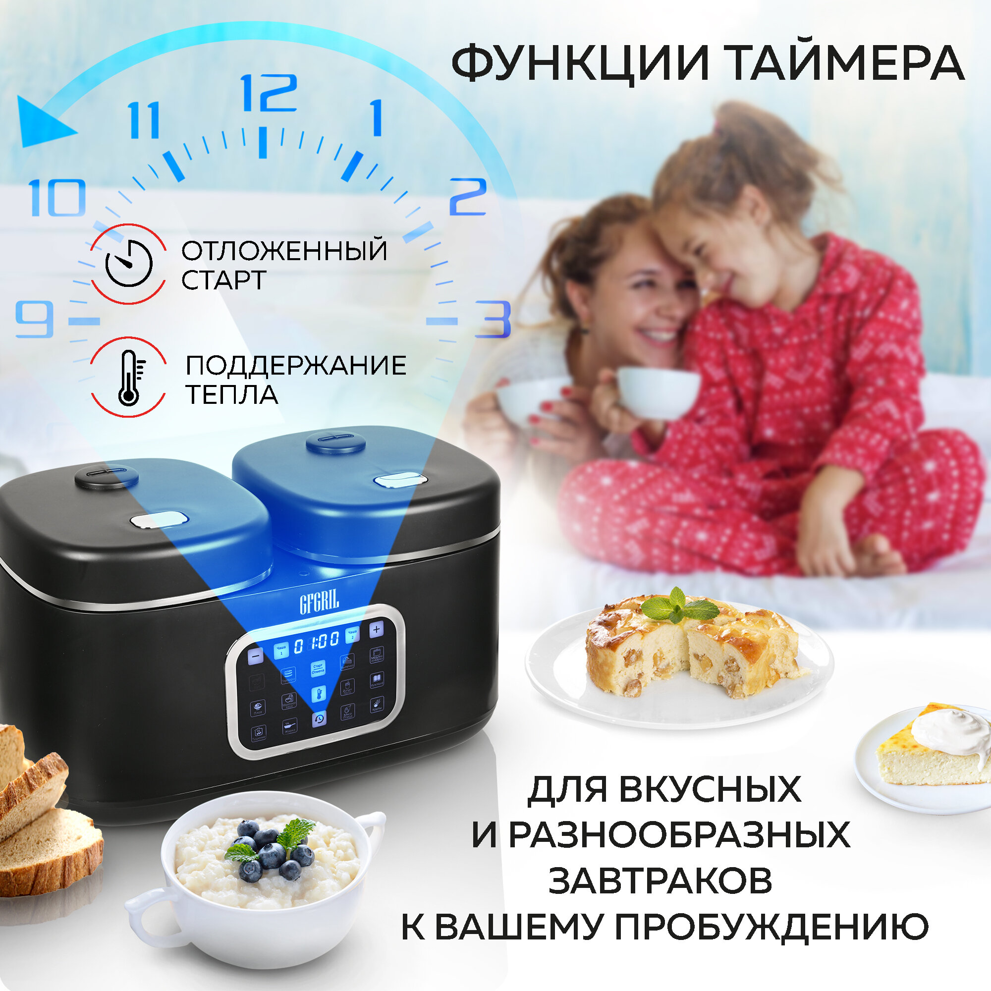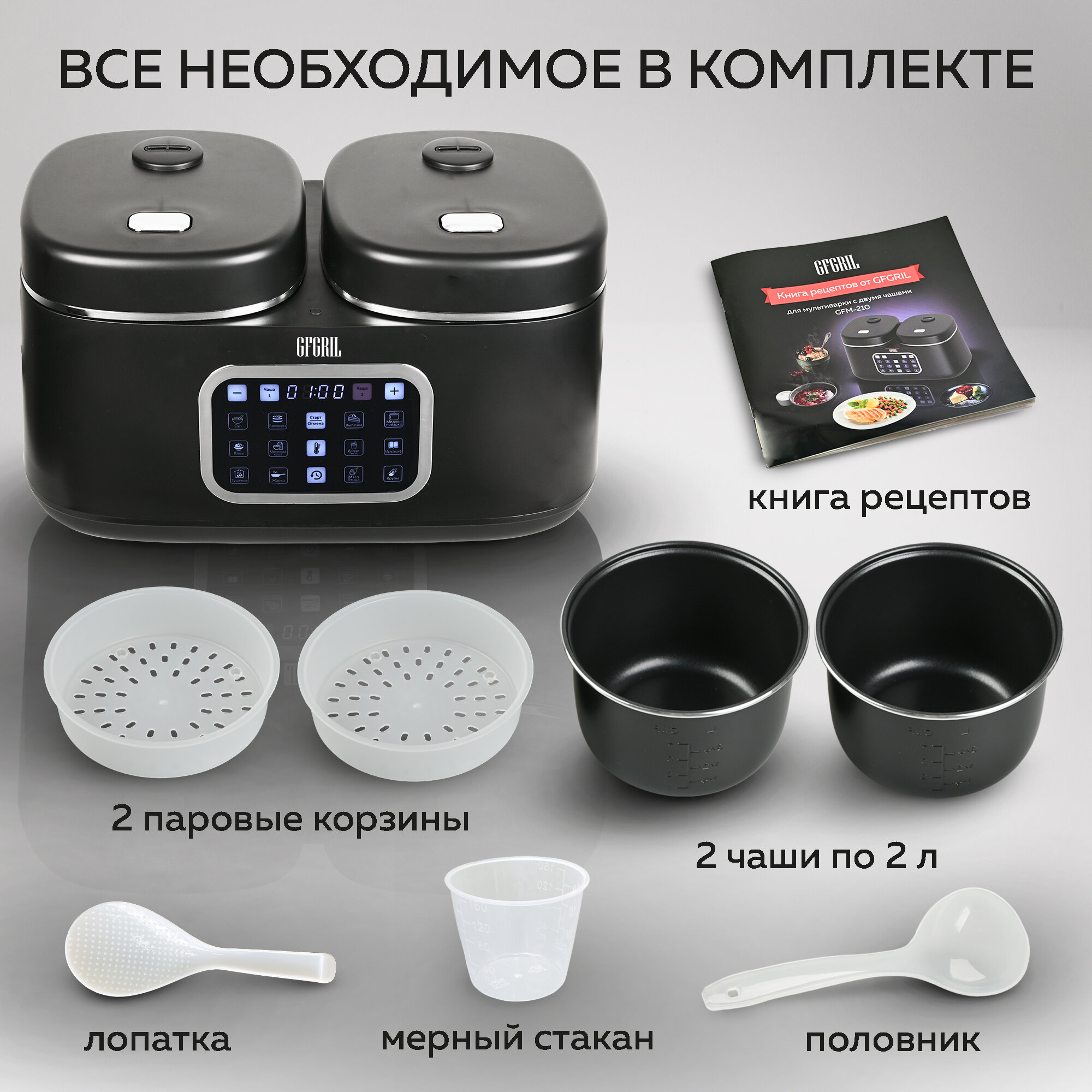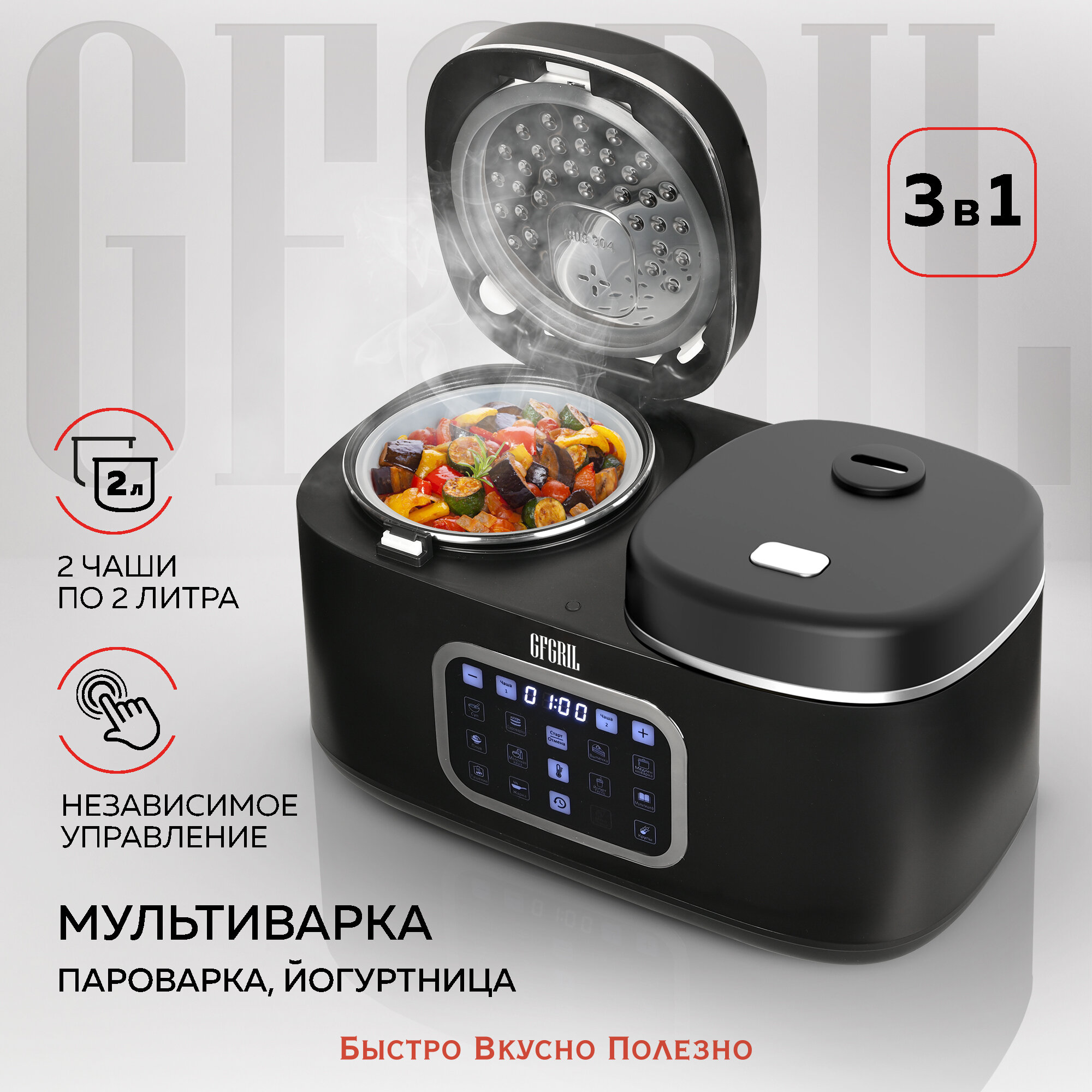 GFGRIL Мультиварка 3 в 1 с двумя чашами GFM-210: мультиварка, пароварка, йогуртница
