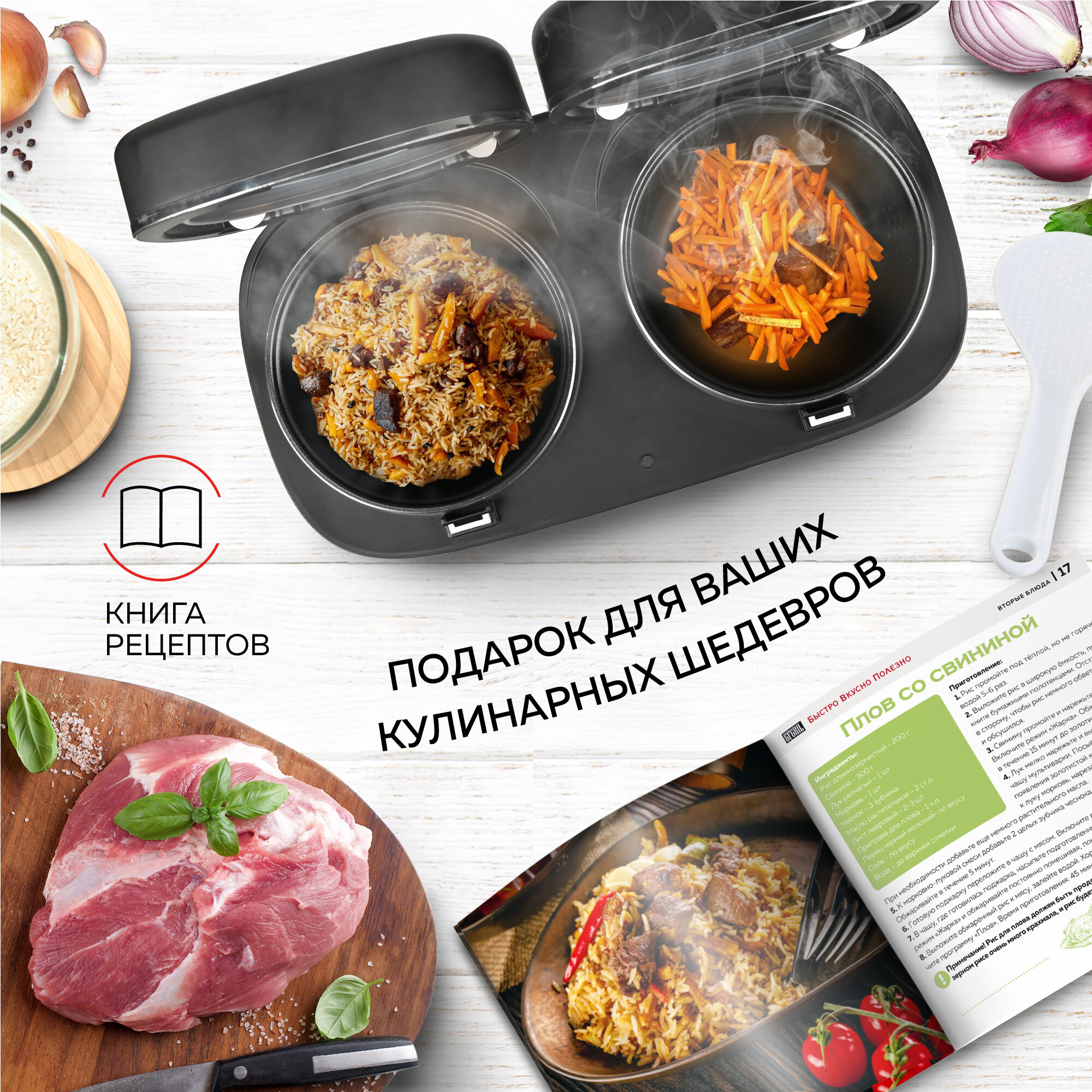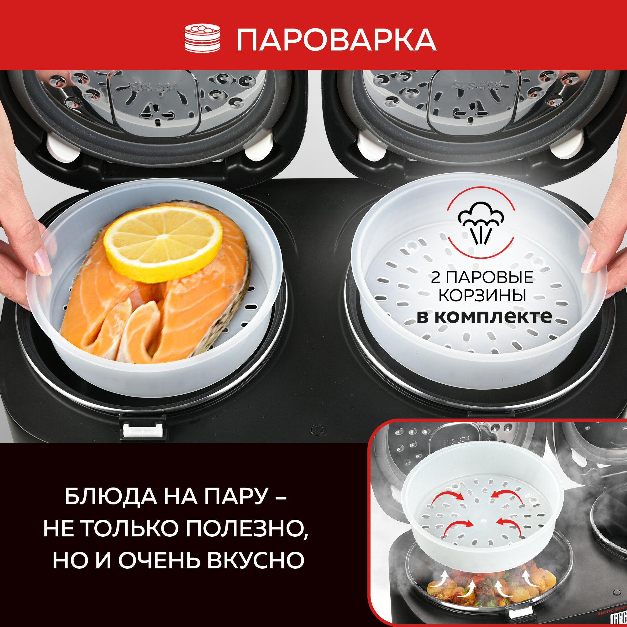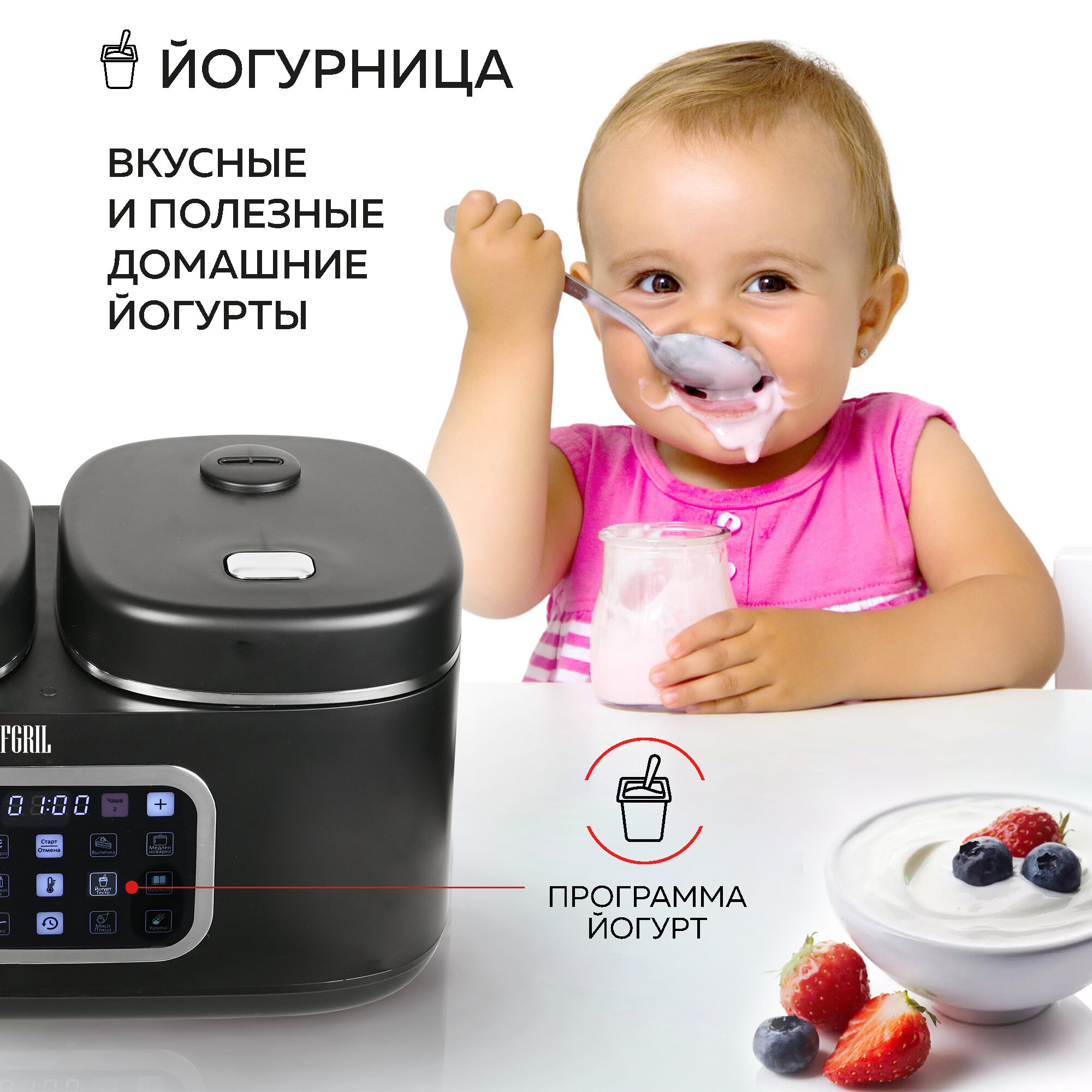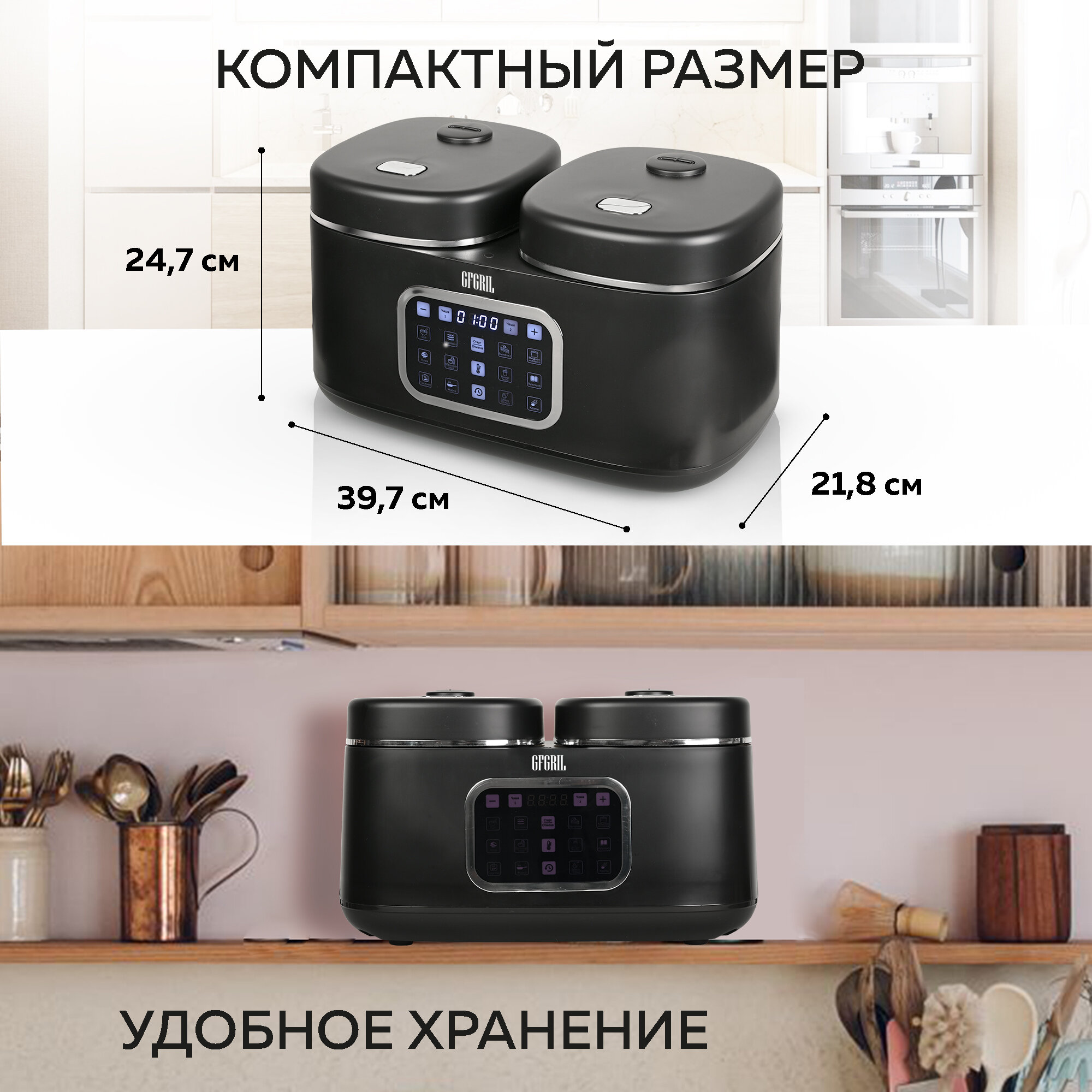 GFGRIL Мультиварка 3 в 1 с двумя чашами GFM-210: мультиварка, пароварка, йогуртница