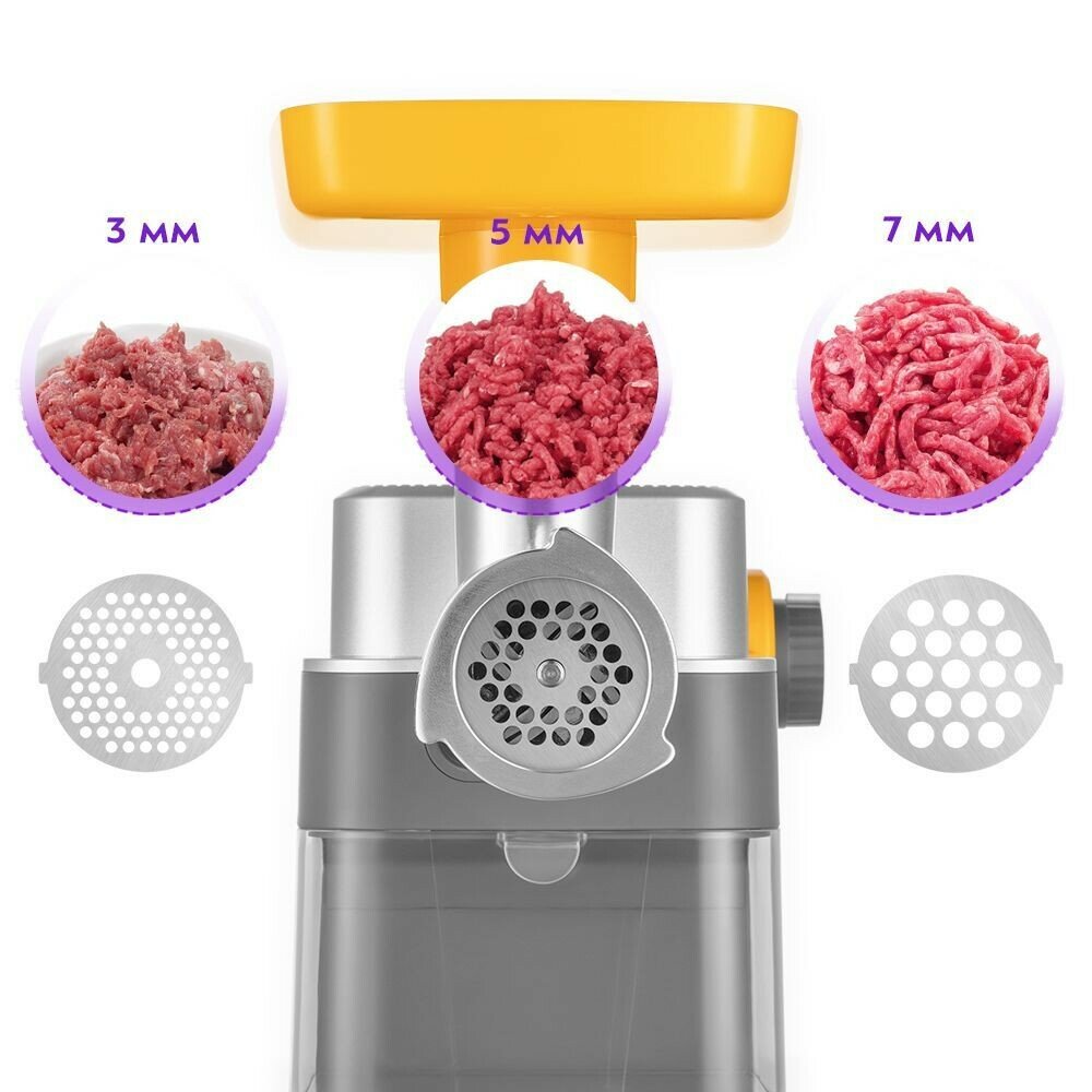 Мясорубка Kitfort КТ-2115, 500 Вт, 1.5 кг/мин, 5 насадок, жёлто-серая