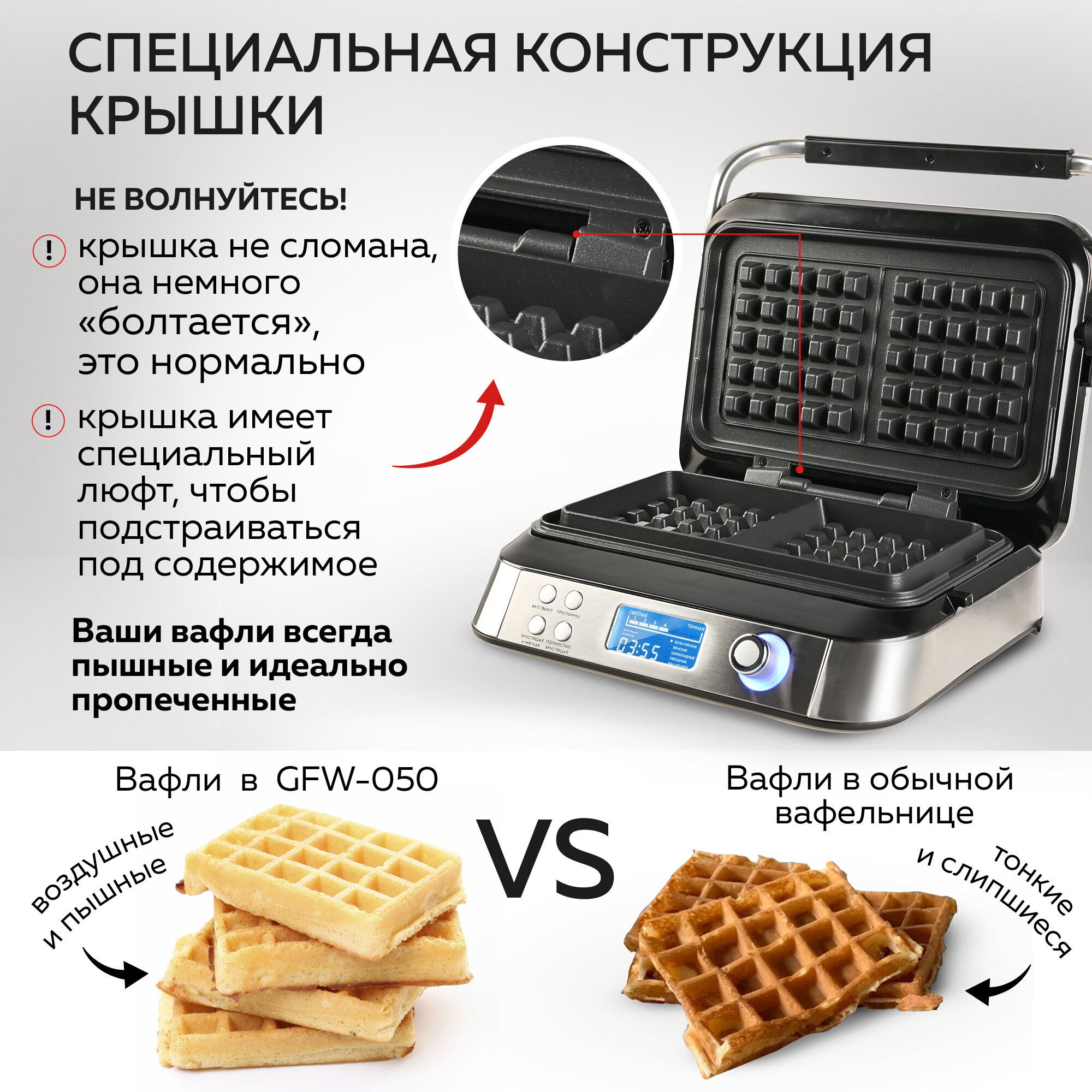 GFGRIL Электрическая вафельница GFW-050, 4 автопрограммы, 14 степеней поджаривания