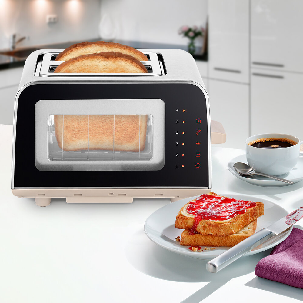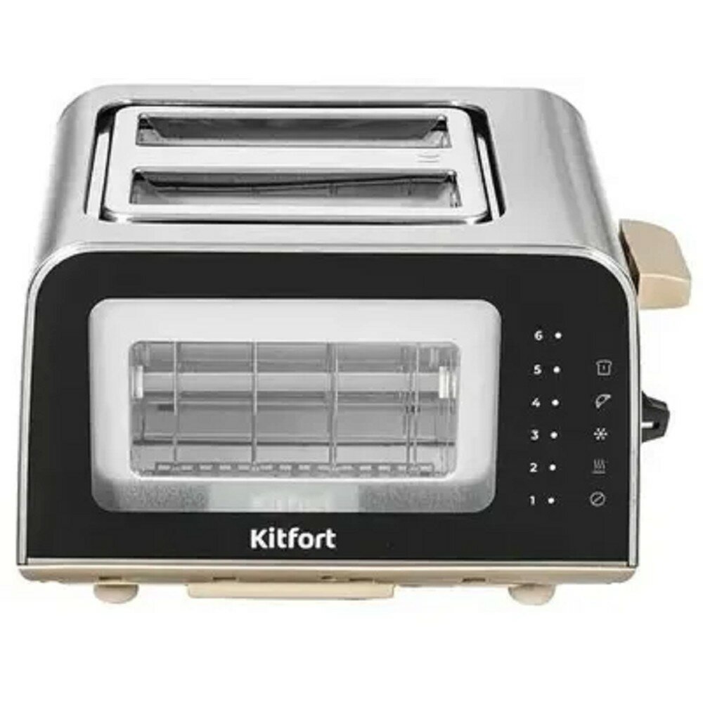 Тостер Kitfort КТ-6060, 1100 Вт, 6 режимов прожарки, 2 тоста, серебристо-бежевый