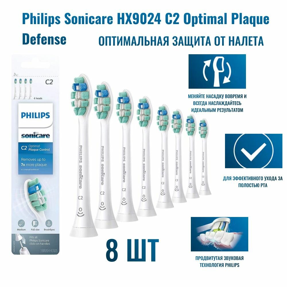 Купить Philips Sonicare HX9024 C2 Optimal Plaque Defense, 8 шт Оптимальная защита от зубного налета