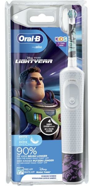 Электрическая зубная щетка Braun Oral-B D100.413 Kids Lightyear голубой интересное: