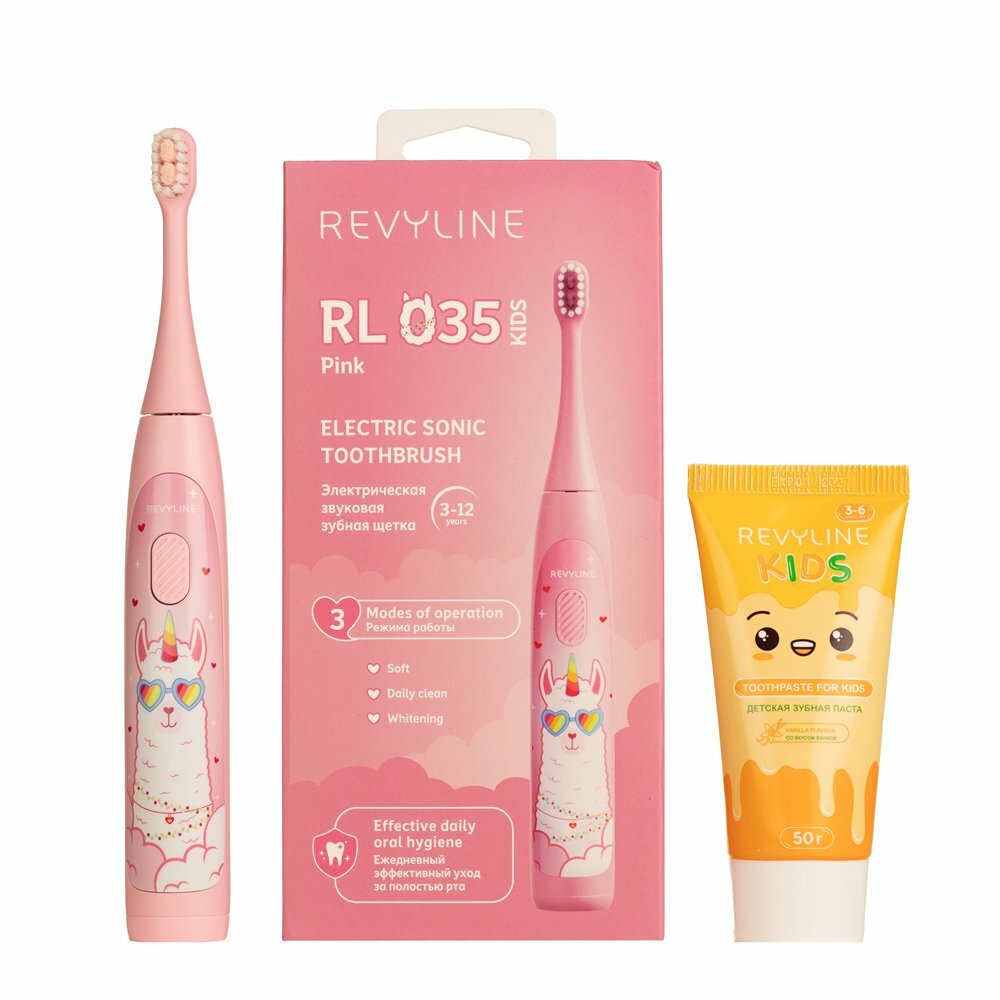 Купить Электрическая зубная щетка Revyline RL 035 розовая + Зубная паста Revyline Kids, 50 г.