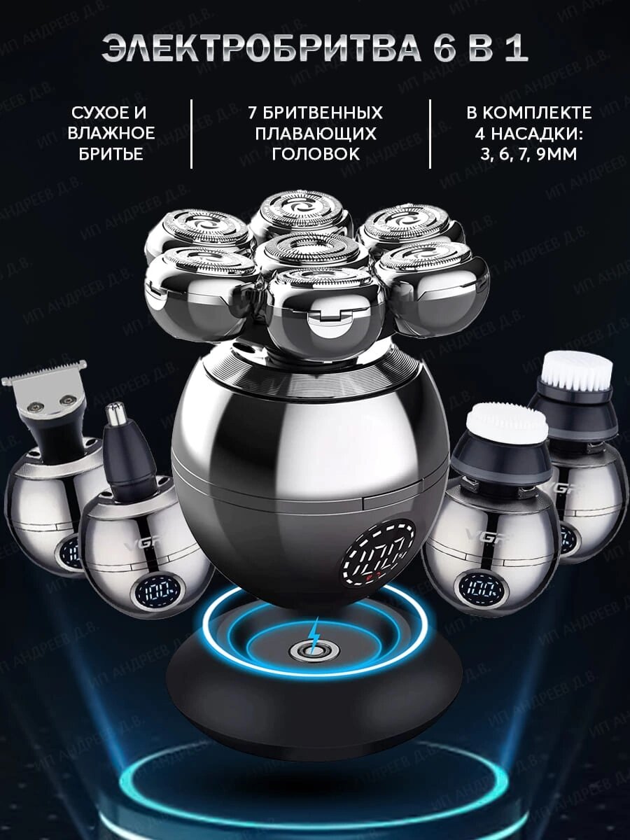 Электробритва для бритья головы 6в1 VGR-315 интересное: