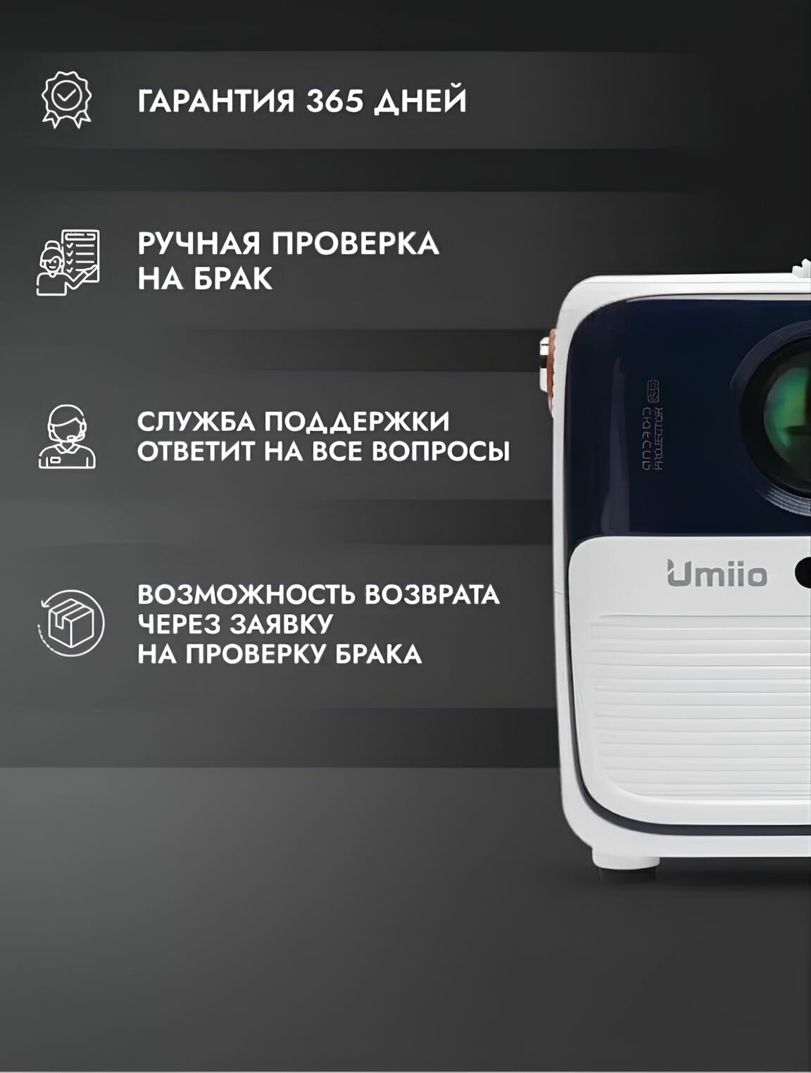 Проектор Umiio Q2(А010) Ultra c разъемом hdmi для работы, фильмов, YouTube, приставок PlayStation или X-Box и других гаджетов / Чёрный
