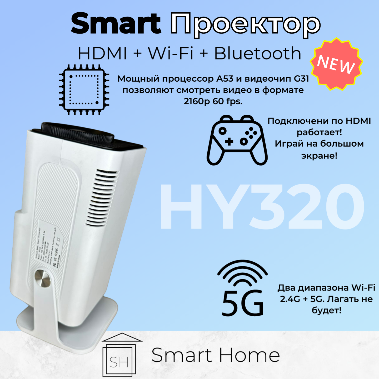Купить Домашний проектор Smart HY320 LCD Android; Bluetooth 5.0; Wi-Fi 6 Dual
