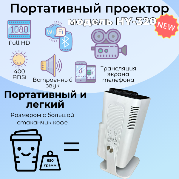 Домашний проектор Smart HY320 LCD Android; Bluetooth 5.0; Wi-Fi 6 Dual интересное: