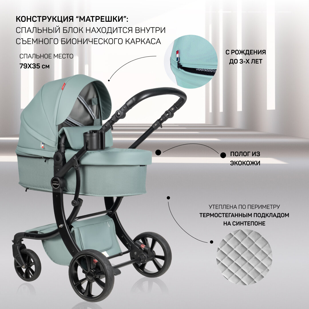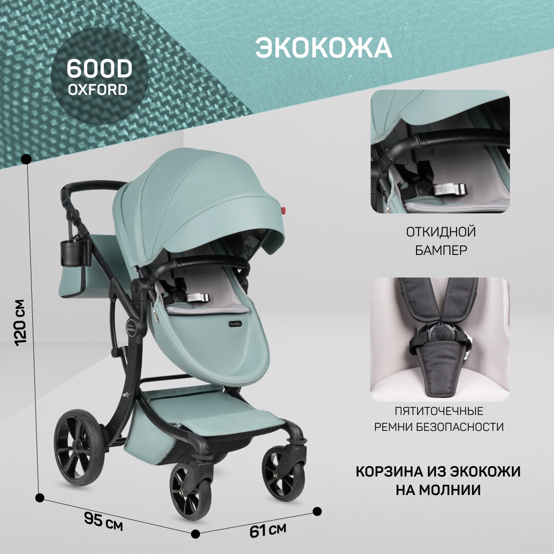 Купить Детская коляска-трансформер Aimile Original PRO, для новорожденных, экокожа, люлька для новорожденных, 2 в 1, цвет аквамарин