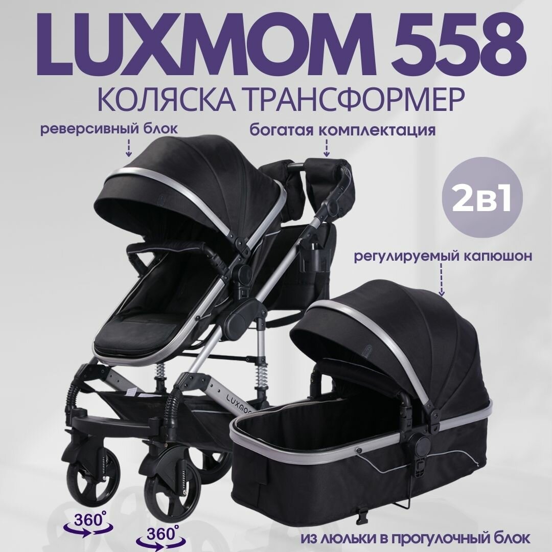 Детская коляска трансформер Luxmom 558 2в1 черный