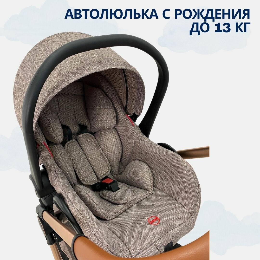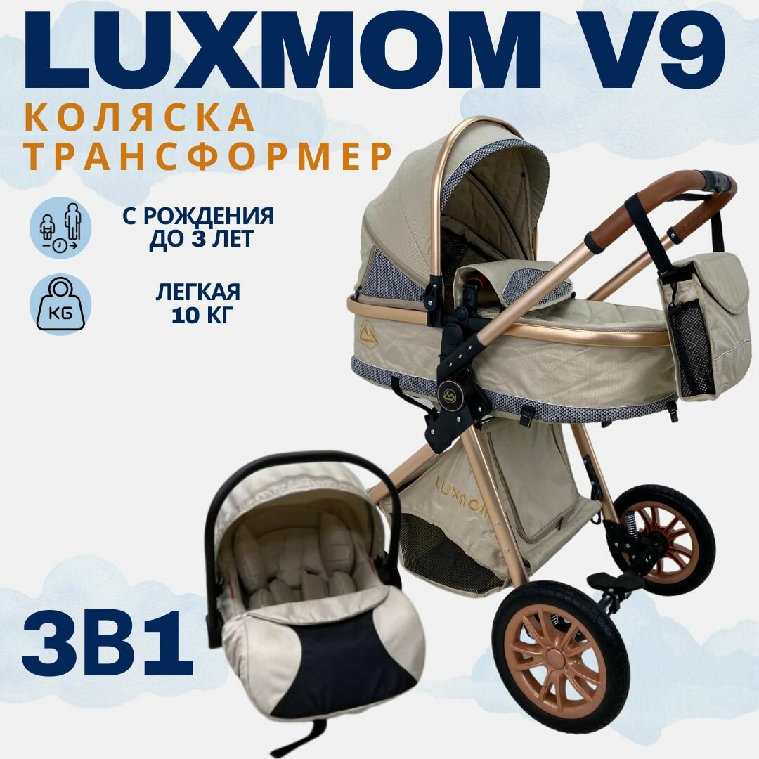 Купить Детская коляска - трансформер Luxmom v9 3в1 бежевый, всесезонная, автолюлька