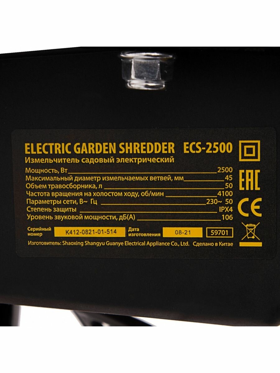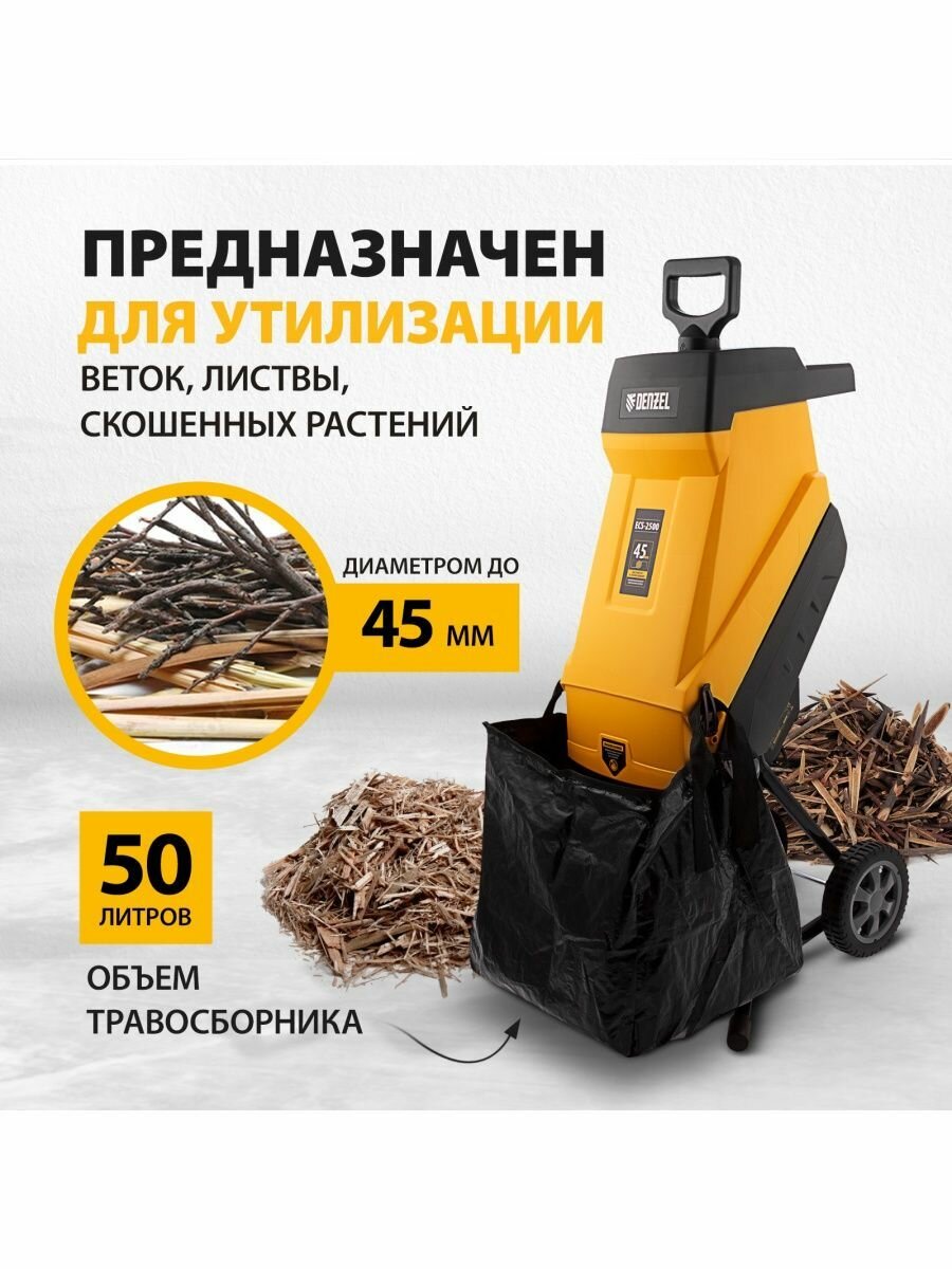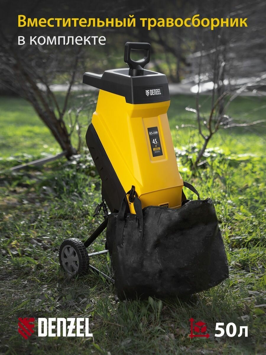 Измельчитель садовый электрический ECS-2500, 2500 Вт, 45 мм, DENZEL 59701 (1 шт.)