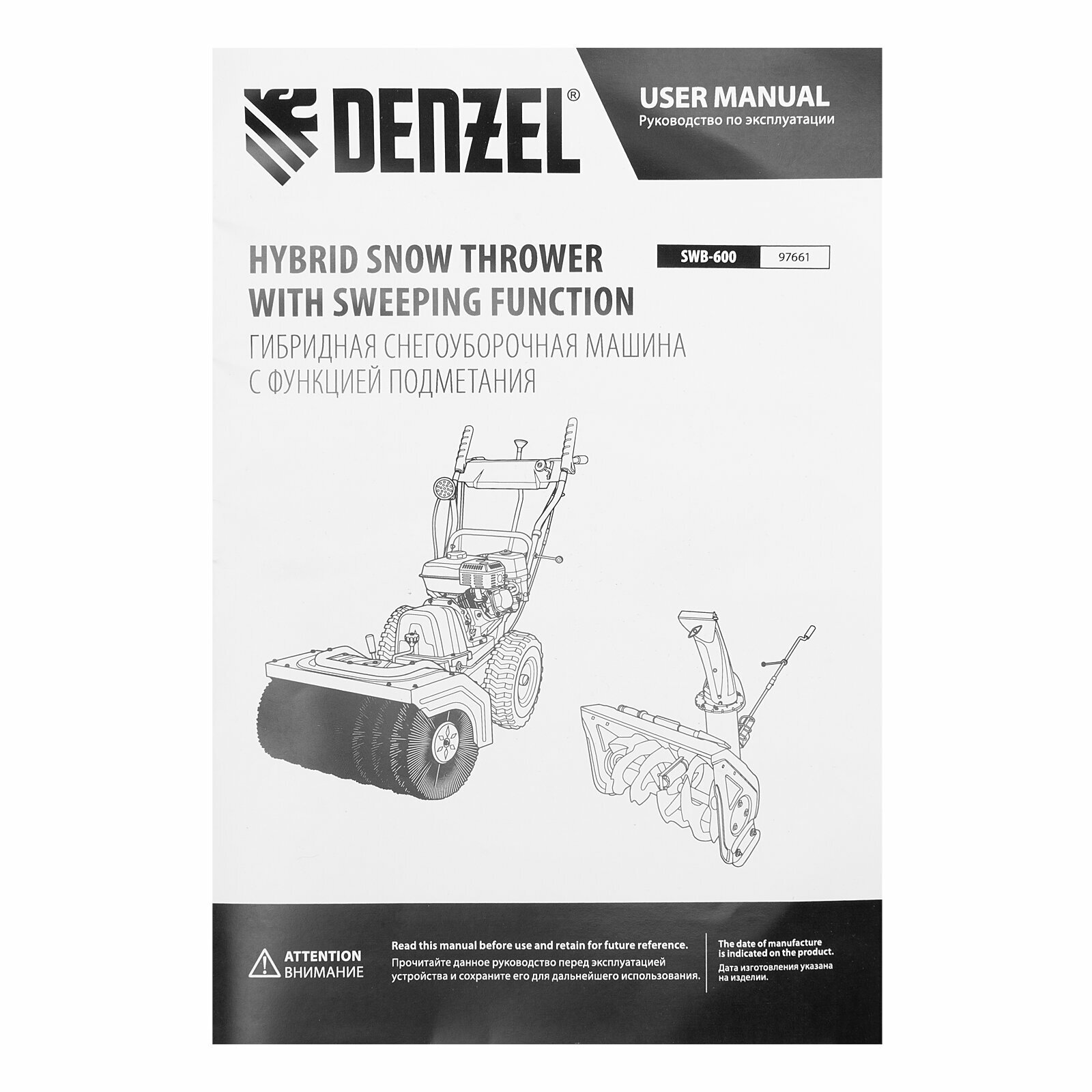 Купить Гибридная снегоуборочная машина с функц. подметания DENZEL SWB-600, 212 сс, руч. старт, 2 насадки