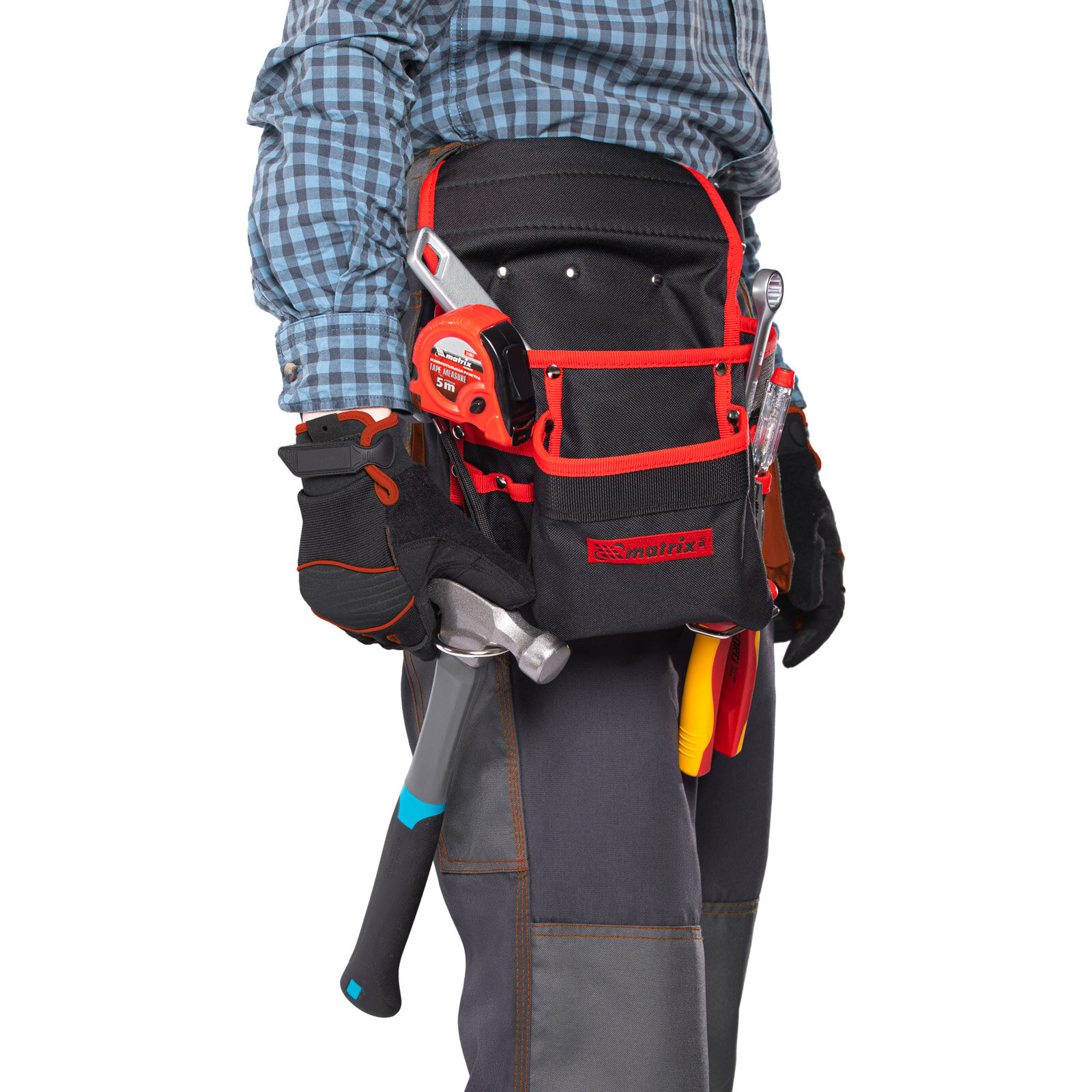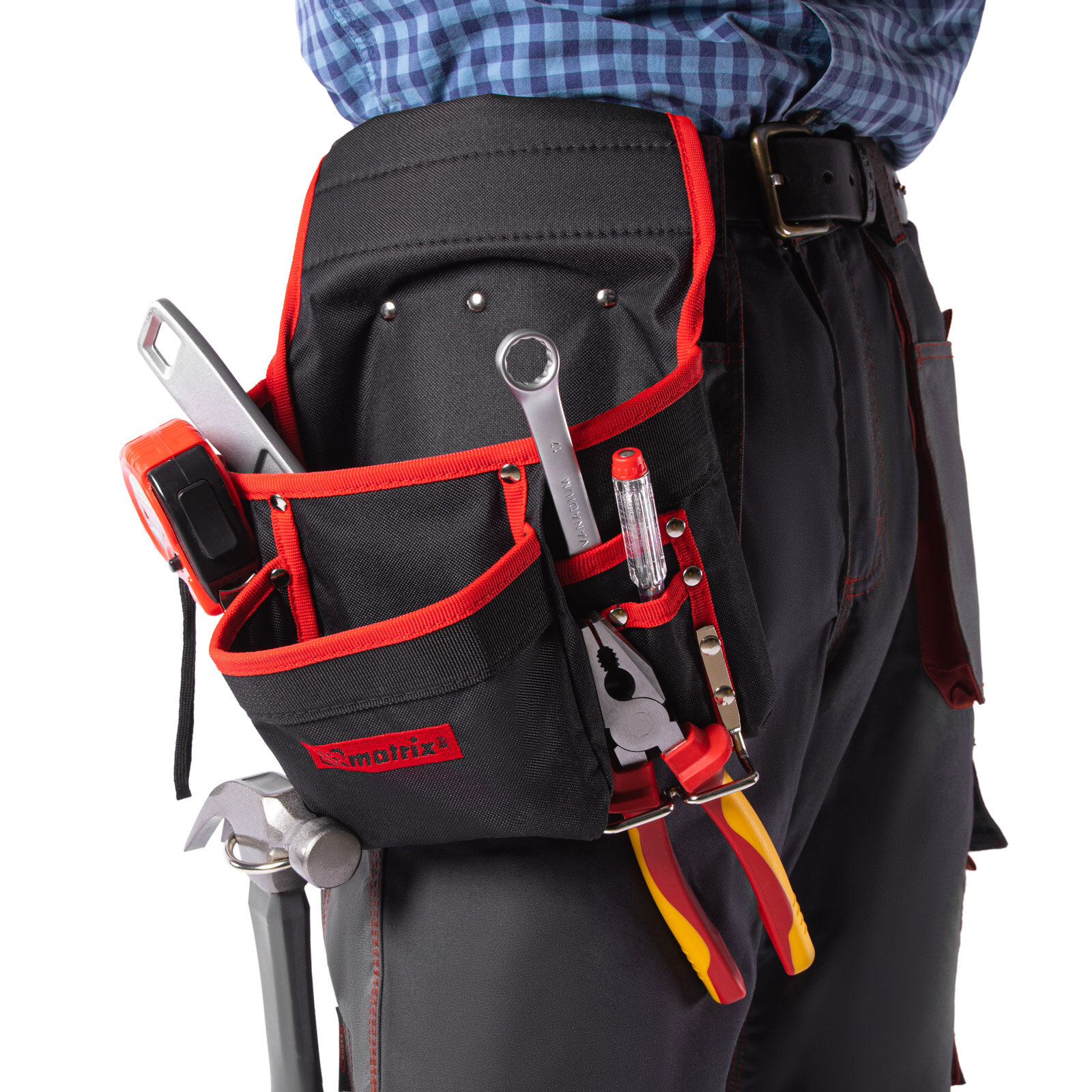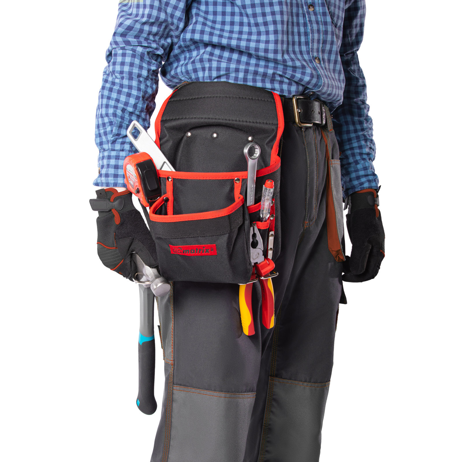 MATRIX Подсумок поясной, 8 карманов, держатель для молотка, для клещей // 90242