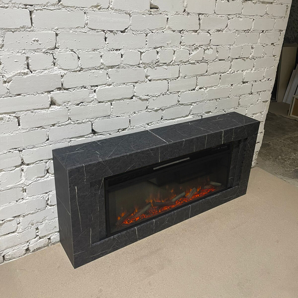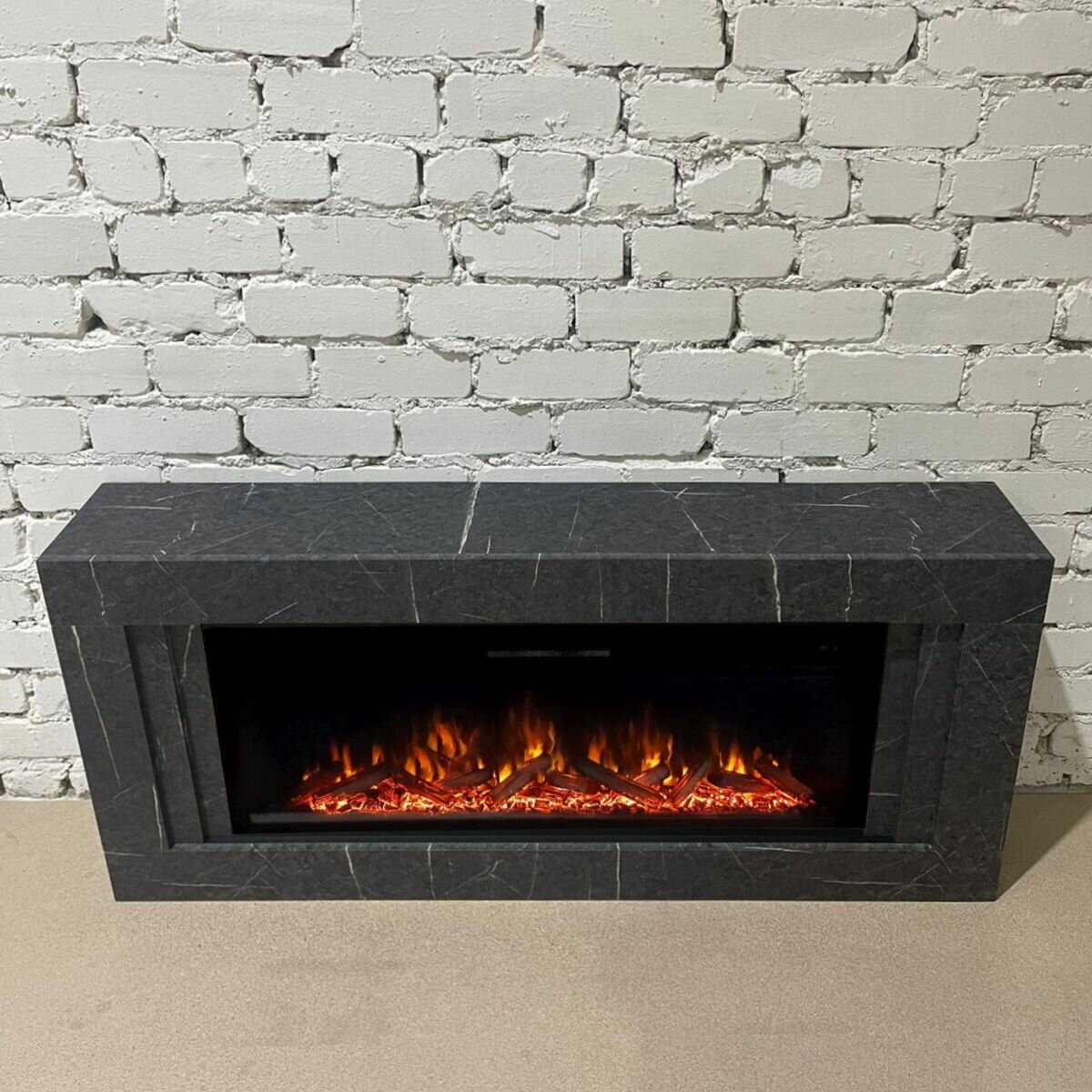 Линейный электрокамин FlameKamin Лайн GR-MR серый мрамор с очагом Joker 45 (линейный электрический камин)