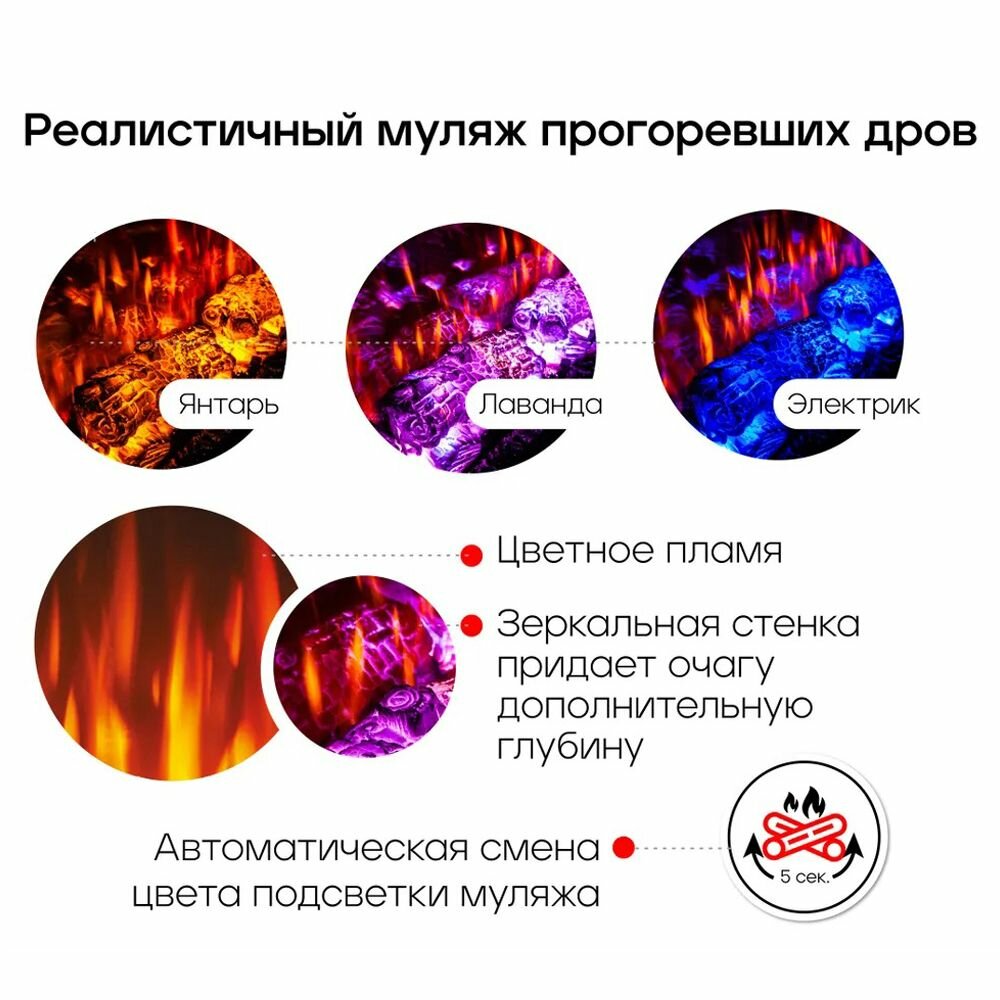 | Особенности | дистанционное управление, работа от сети, эффект живого огня |