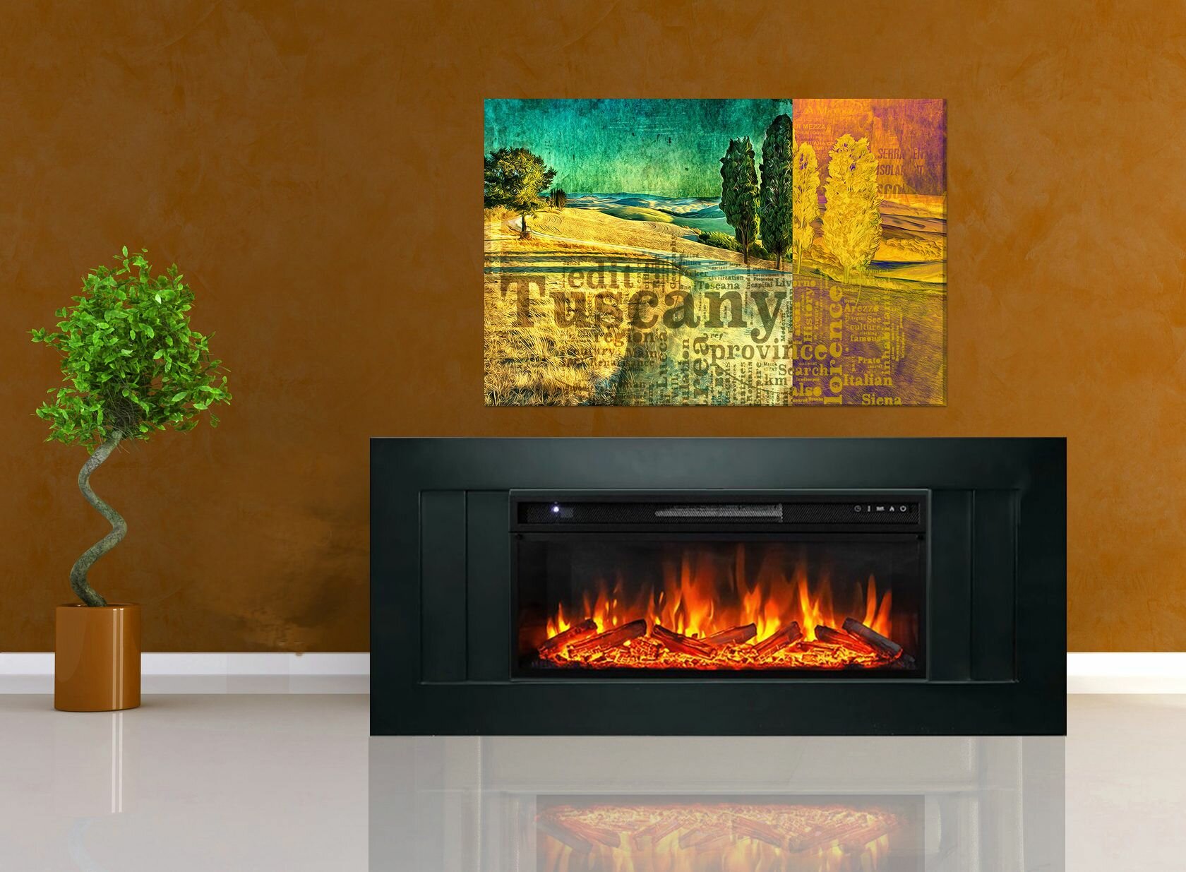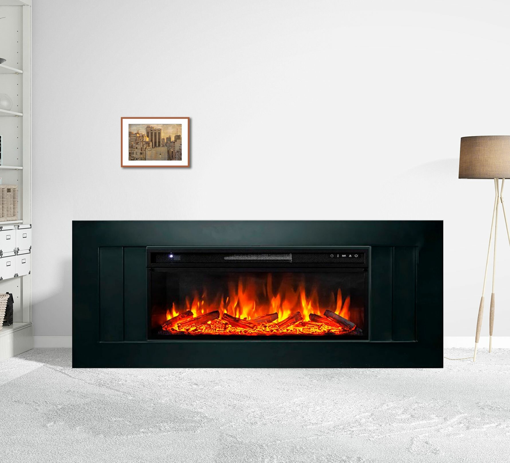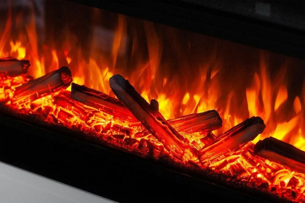 Линейный электрокамин FlameKamin Лайн WT с очагом Vision 42 LOG LED, дрова, обогрев, пульт ДУ (линейный электрический камин)