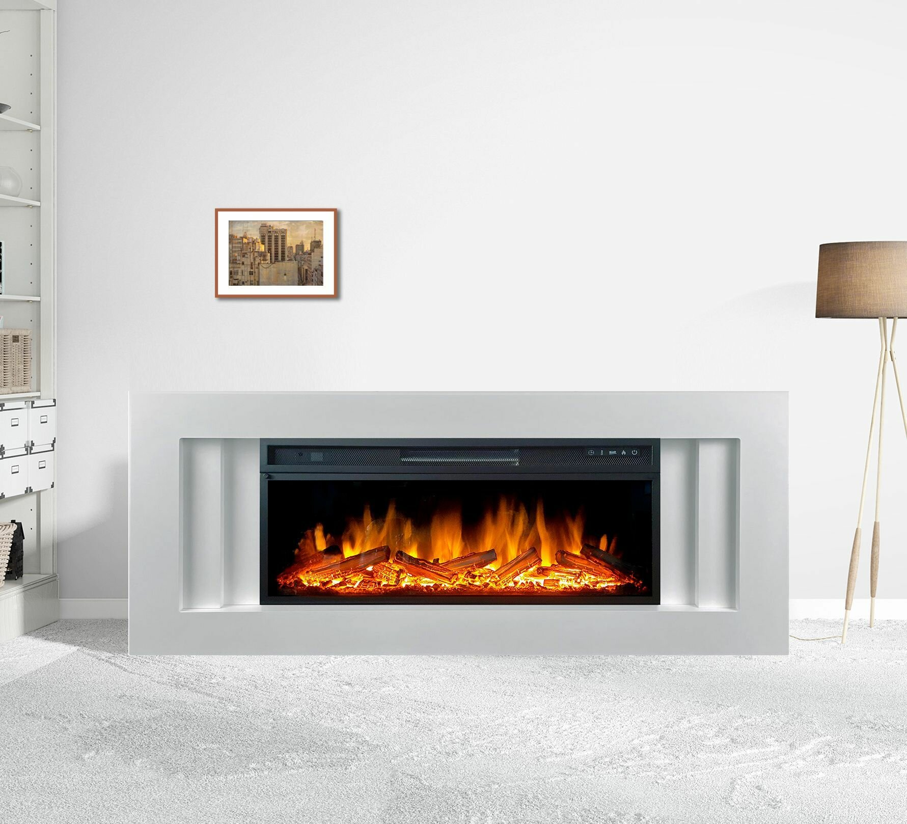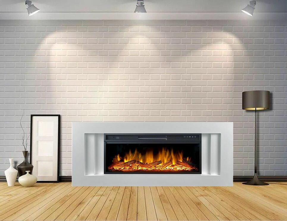 Купить Линейный электрокамин FlameKamin Лайн WT с очагом Vision 42 LOG LED, дрова, обогрев, пульт ДУ (линейный электрический камин)
