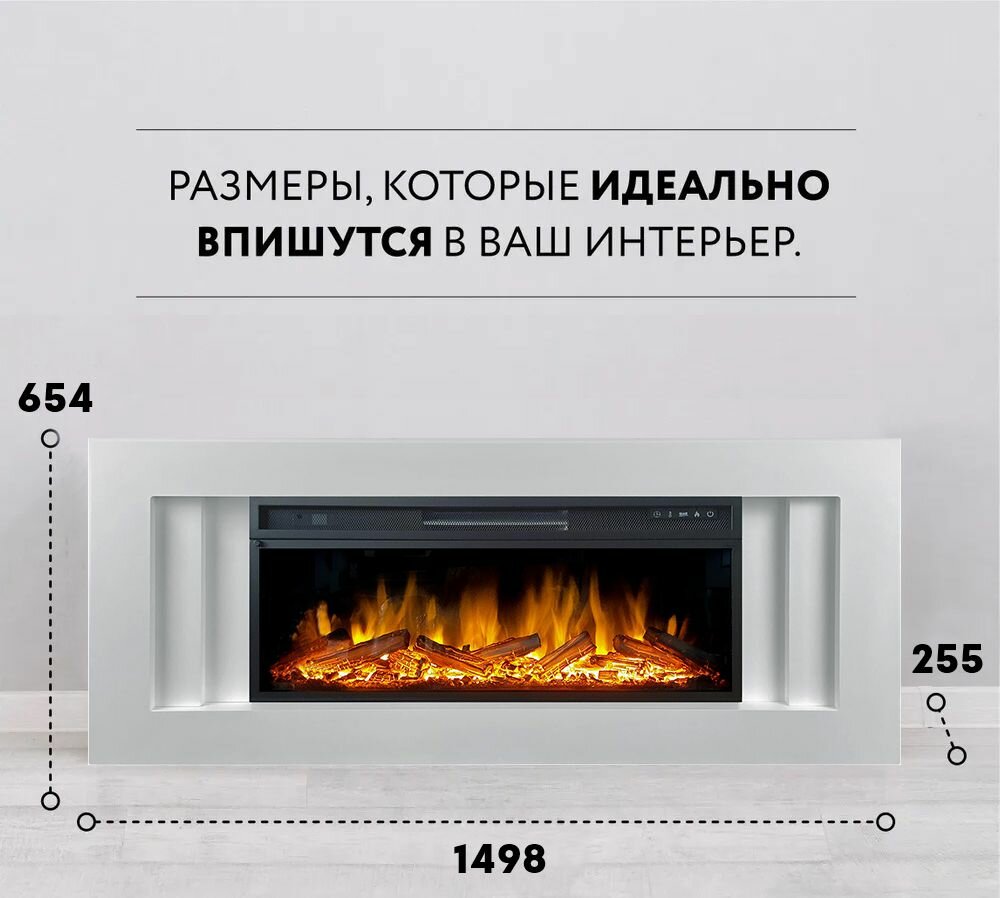 СохранитьЛинейный электрокамин FlameKamin Лайн WT с очагом Vision 42 LOG LED, дрова, обогрев, пульт ДУ (линейный электрический камин) интересное:
