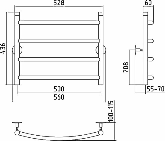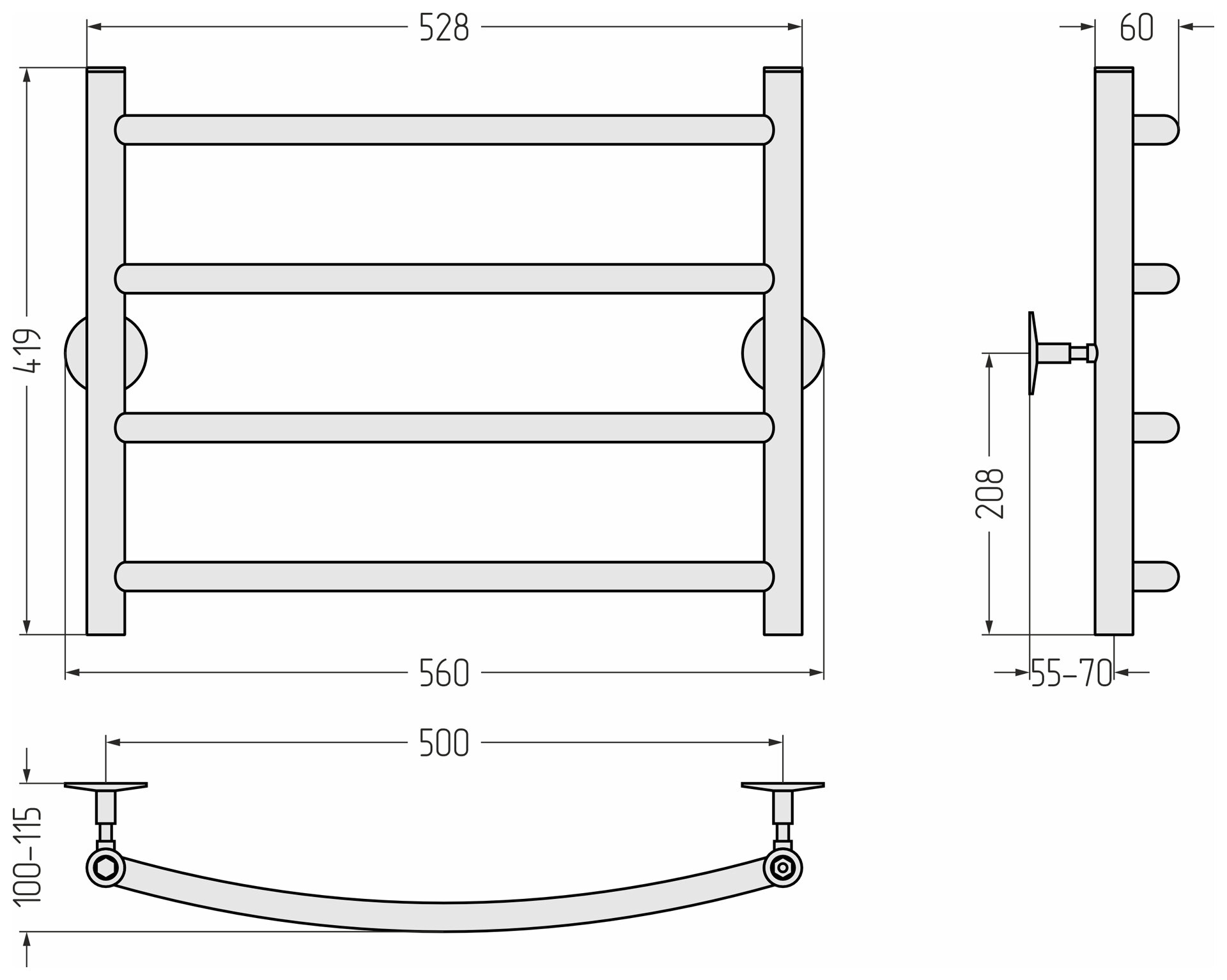 Полотенцесушитель водяной Стилье Универсал-50 500х500 (4) Г 21 Без покрытия 00650-5050