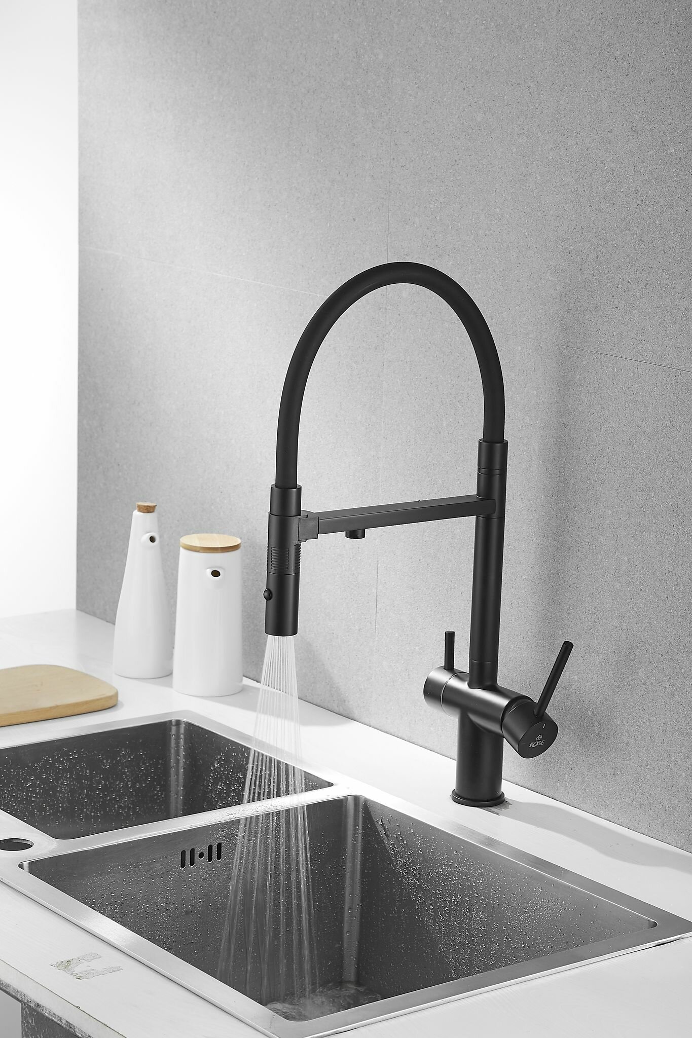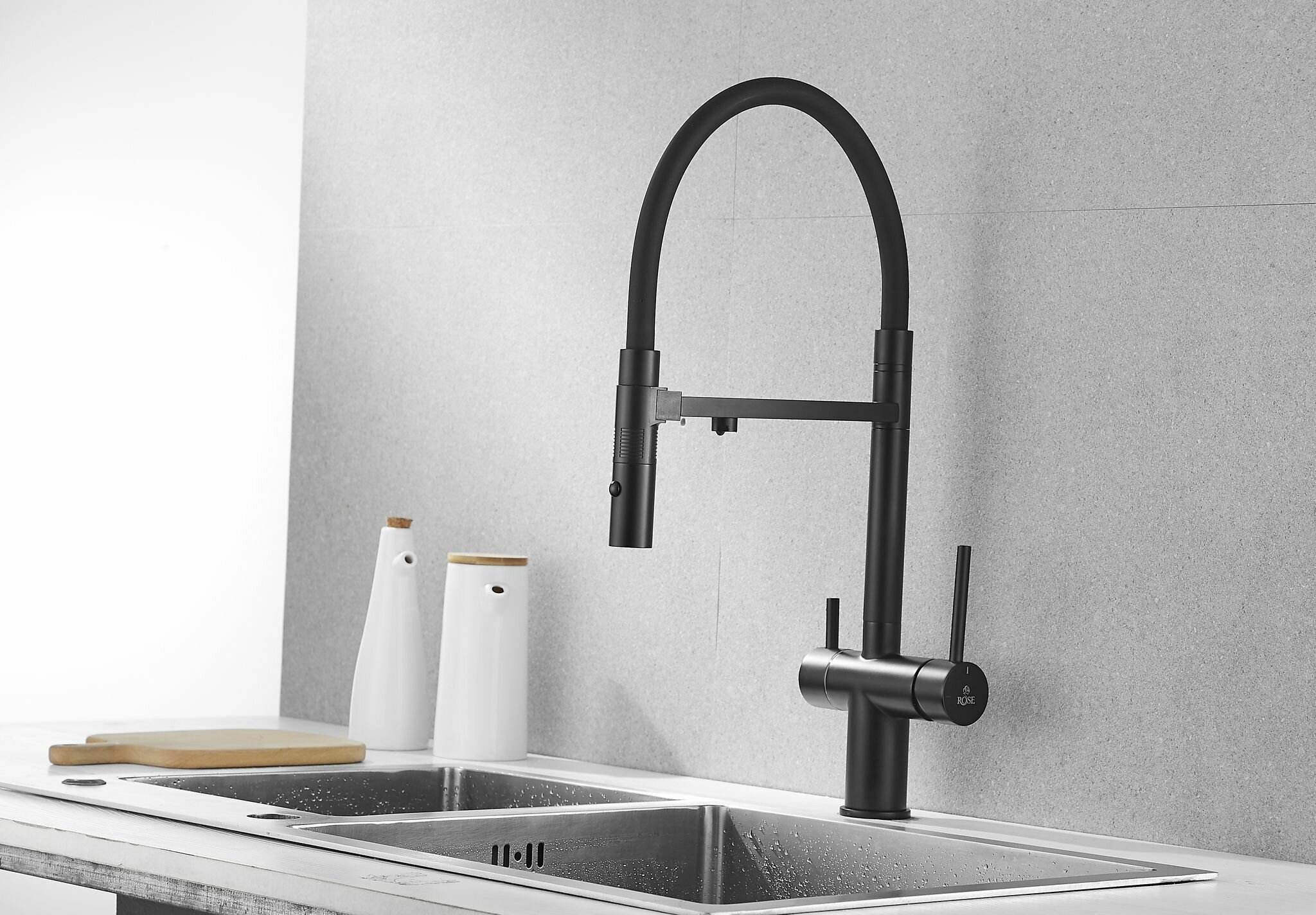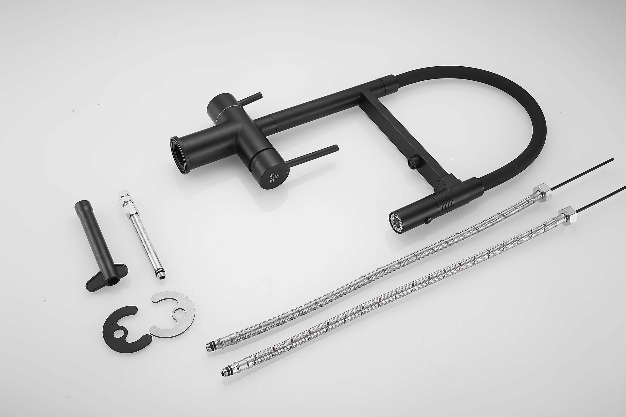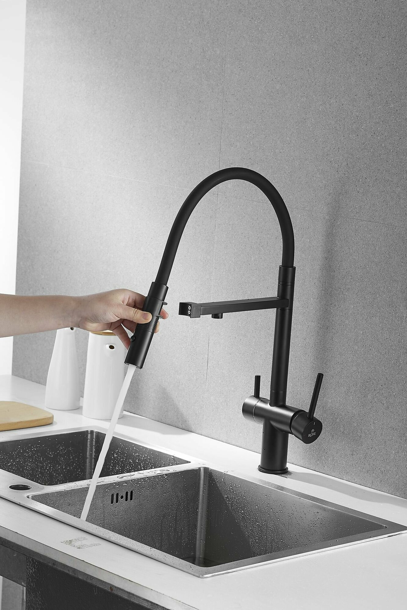 Смеситель для кухни с гибким изливом и подключением к фильтру Rose R958H, черный