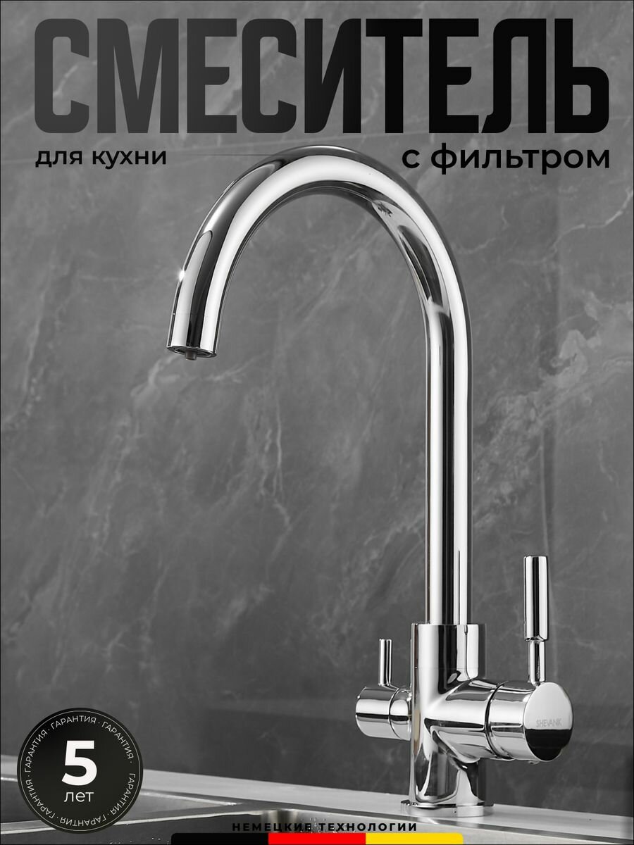 Cмеситель для кухни с краном под фильтр для питьевой воды и поворотным изливом Shevanik S168 хром, латунь