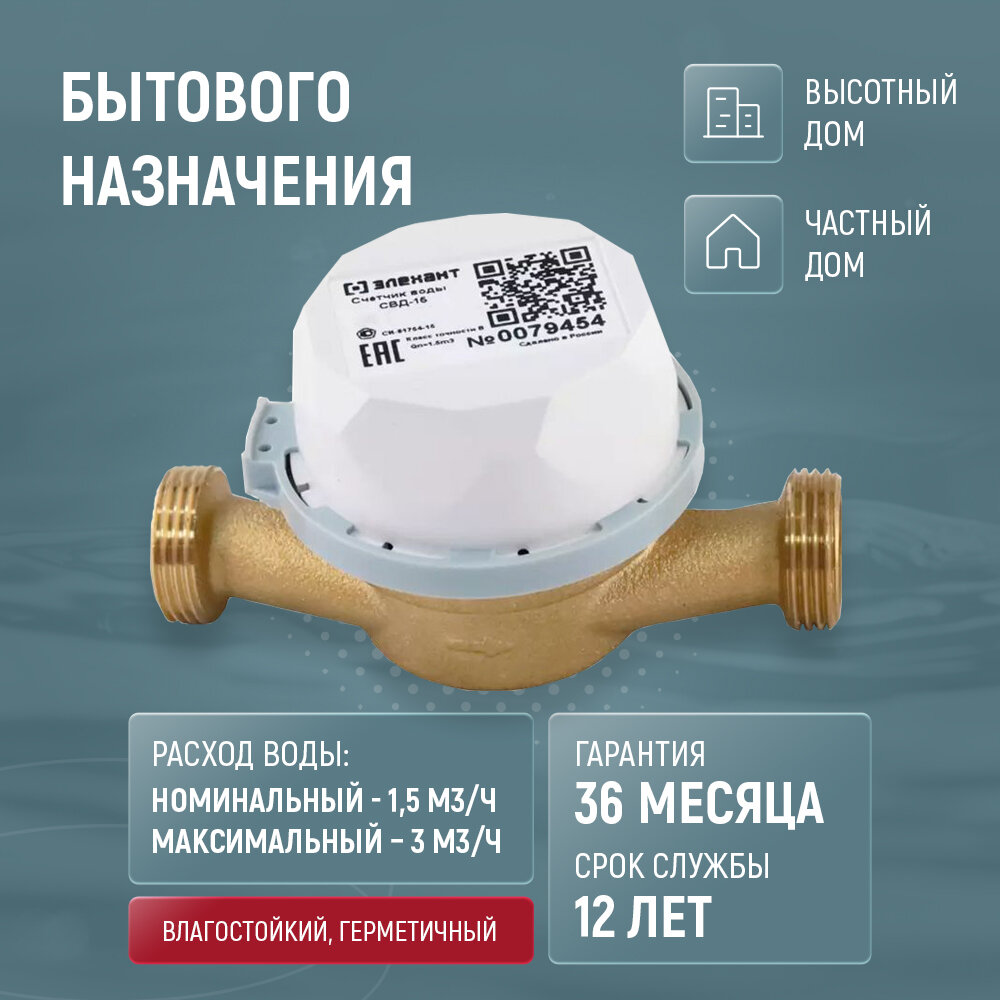 Счетчик для воды универсальный Элехант СВД-15 Ду 15 без КМЧ интересное: