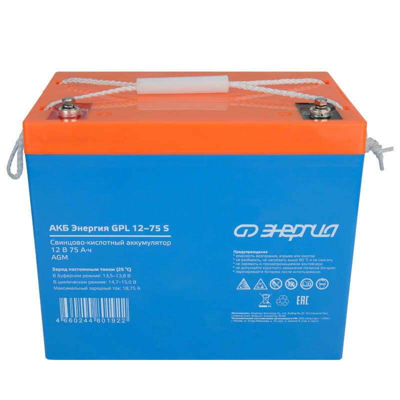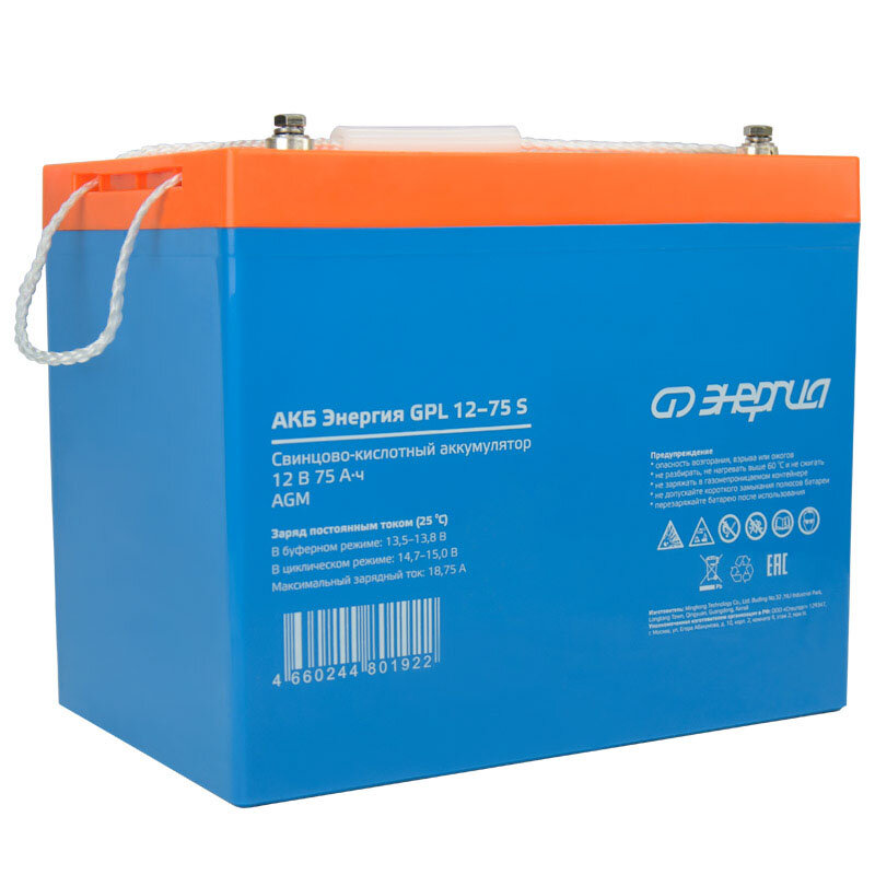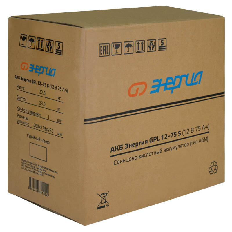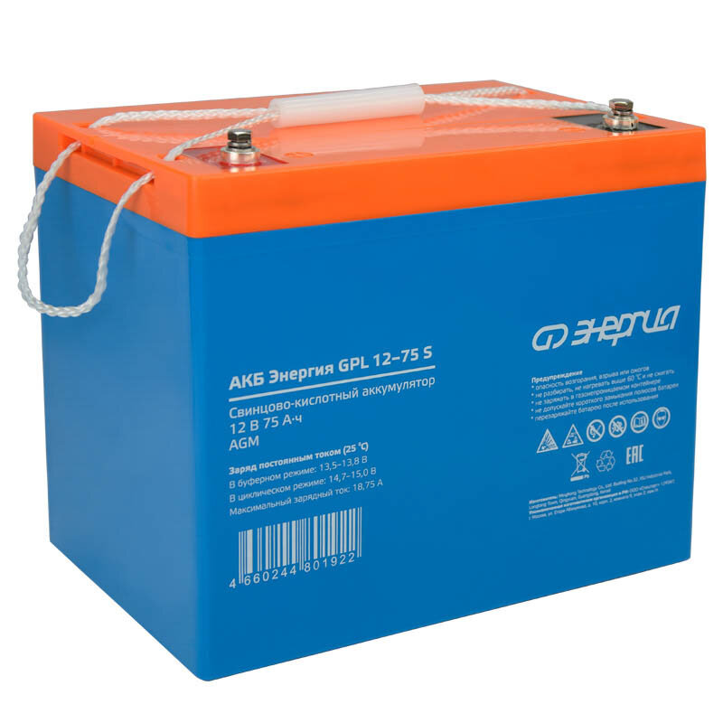 Аккумулятор Энергия GPL 12-75 S, 12V, 75Ач, AGM