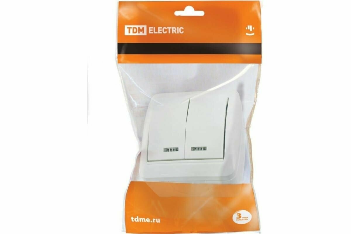 Купить Выключатель 2-кл. открытой установки с подсветкой IP44 10А белый "Селигер" TDM