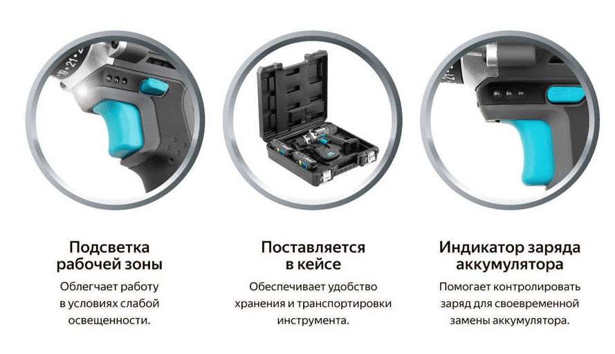 | Особенности | расчётное время заряда аккумулятора 60 мин, индикатор заряда аккумулятора |