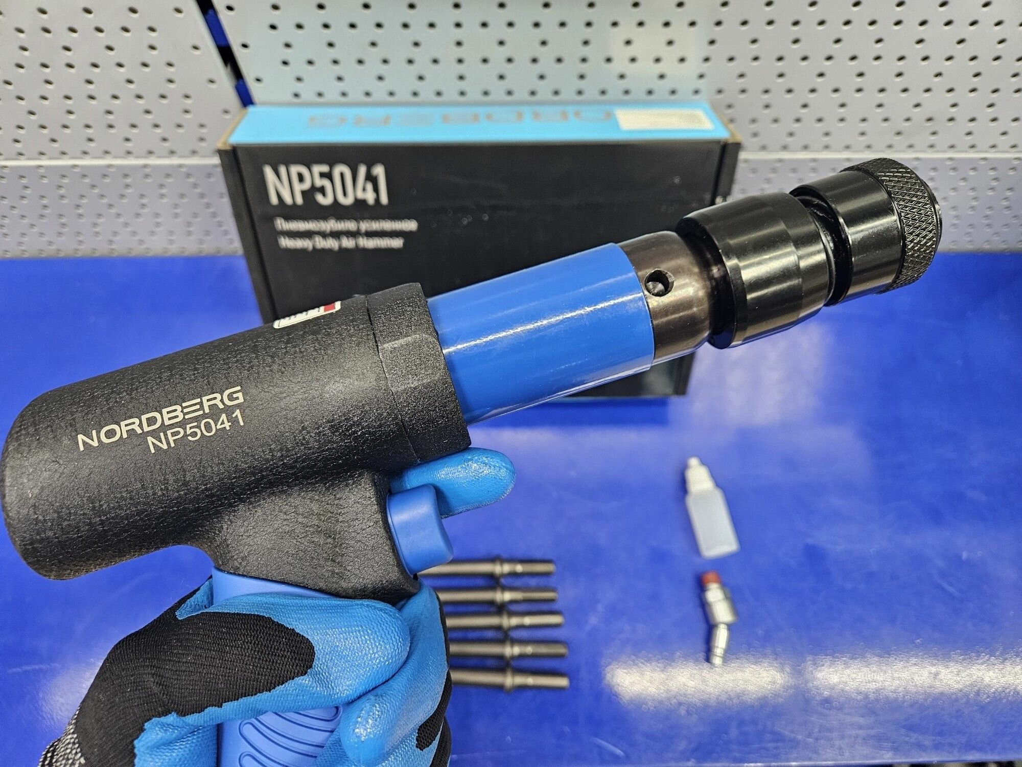 Купить Пневматическое зубило 234 мм NORDBERG NP5041, комплект насадок, быстросъёмный держатель, усиленный корпус, 2200 ударов/мин, ход поршня 89 мм, расход воздуха 89 л/мин,