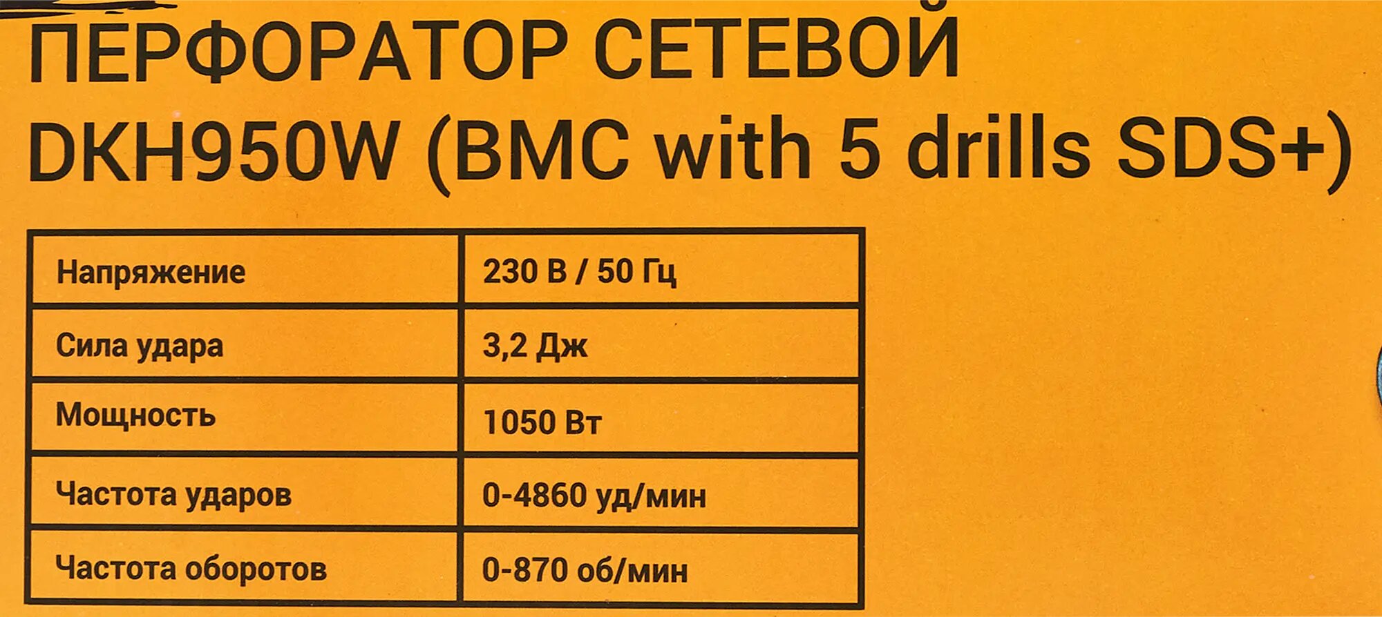 Перфоратор сетевой SDS-plus DKH950W 1050 Вт 3.2 Дж с набором буров интересное: