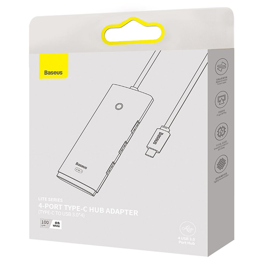 Хаб Baseus Lite Series 4-Port Type-C HUB Adapter (Type-C to USB 3.0x4 ) 25 см White (WKQX030302)