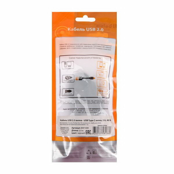 Кабель USB 2.0/USB Type C BELSIS черный 1,8 м BW1439