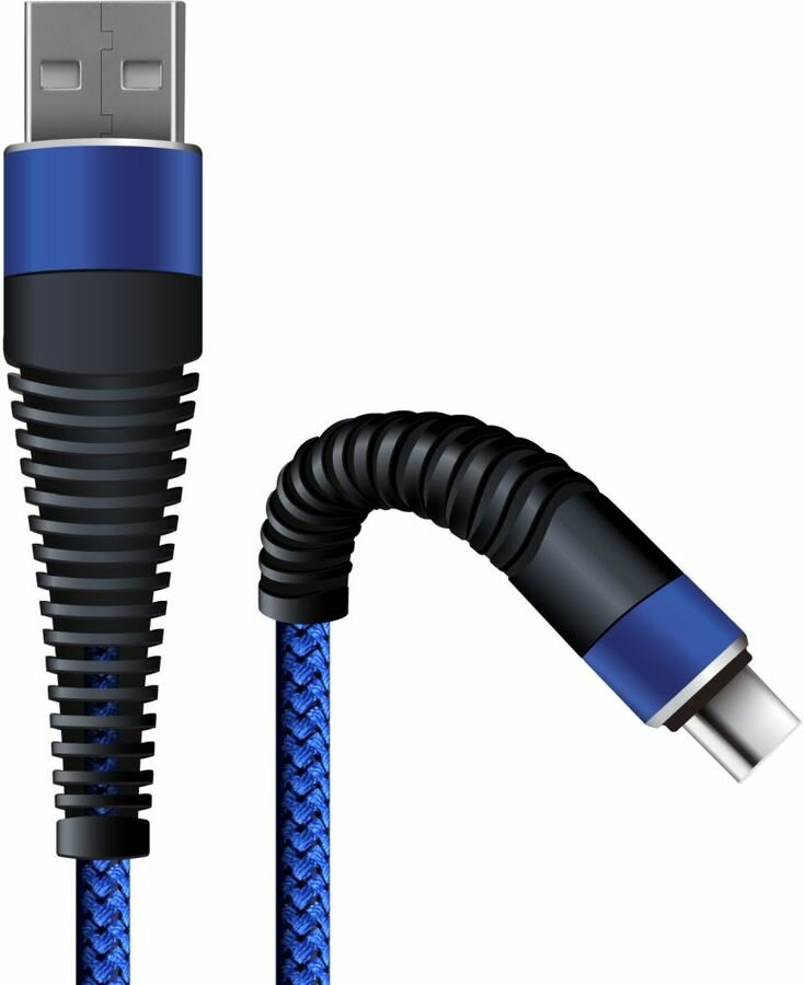 Кабель BORASCO Fishbone, USB Type-C (m) - USB (m), 1м, в оплетке, 3A, синий [38505] интересное: