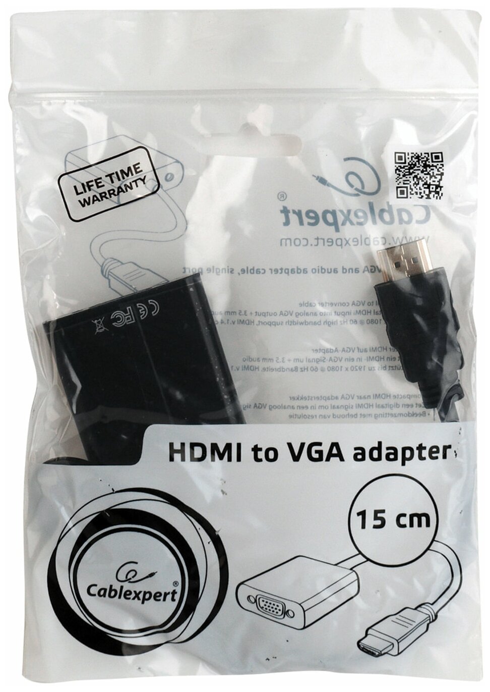 Кабель-переходник HDMI-VGA, 15 см, CABLEXPERT, M-F, для передачи аналогового видео, A-HDMI-VGA-04