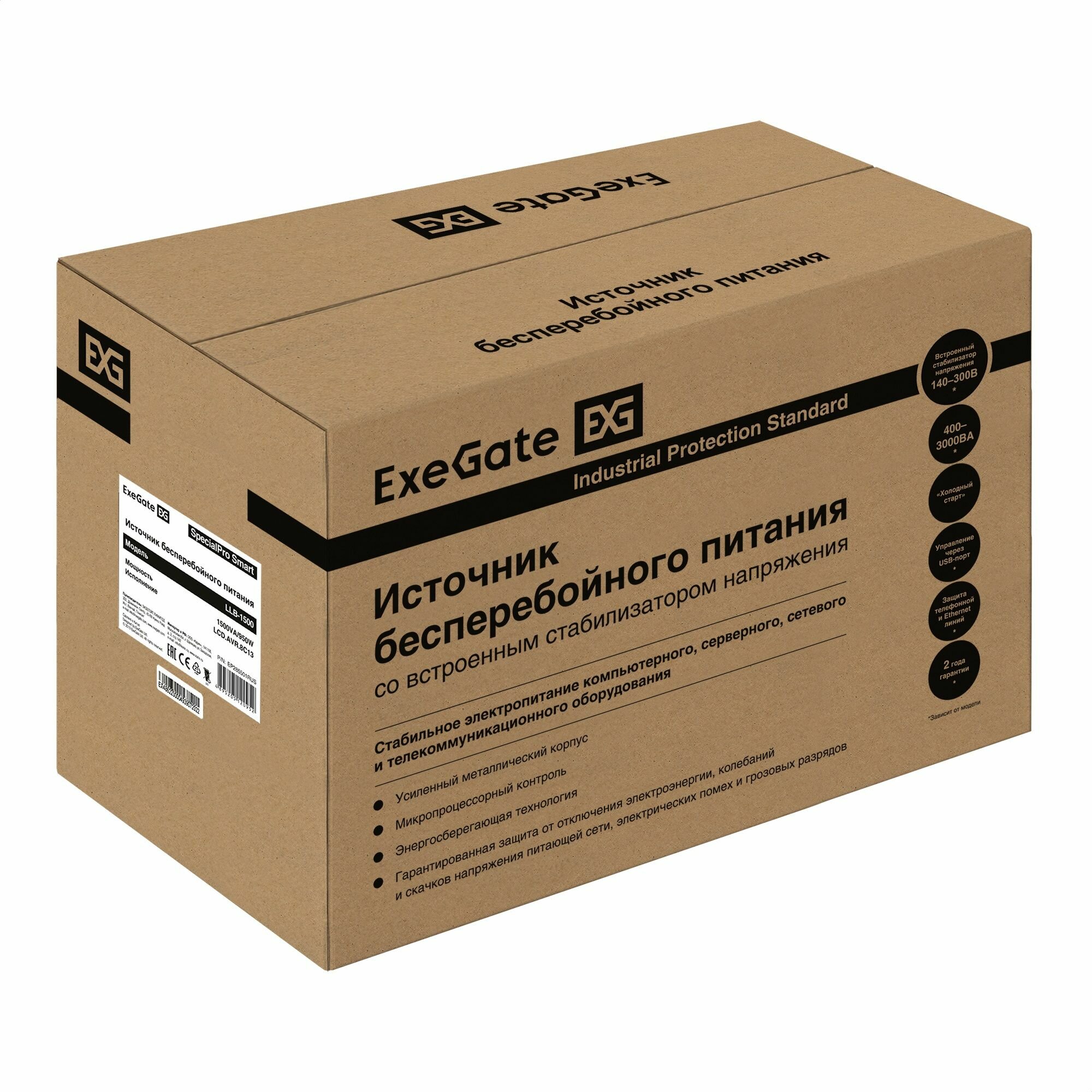 Купить EP285501RUS, ИБП ExeGate SpecialPro Smart LLB-1500.LCD.AVR.8C13 1500VA/950W, LCD, AVR, 8*C13, металлический корпус, Black
