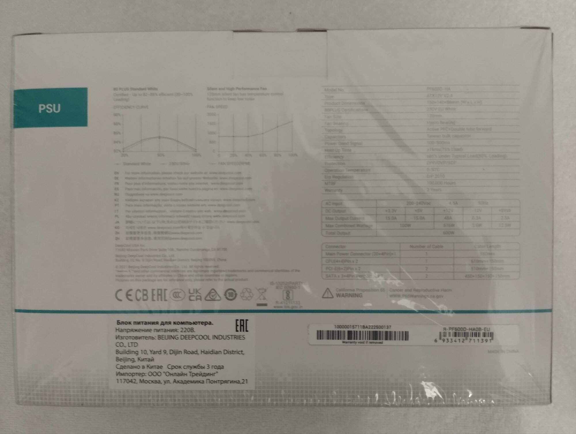 Блок питания Deepcool PF600 80+ (ATX 2.4 600W, PWM 120mm fan, 80 PLUS, Active PFC) RET интересное: