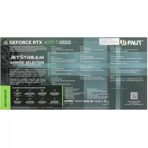 Видеокарта Palit GeForce RTX 4070 Ti Super 16384Mb, JetStream OC 16G (NED47TSS19T2-1043J) 1xHDMI, 3xDP, Ret