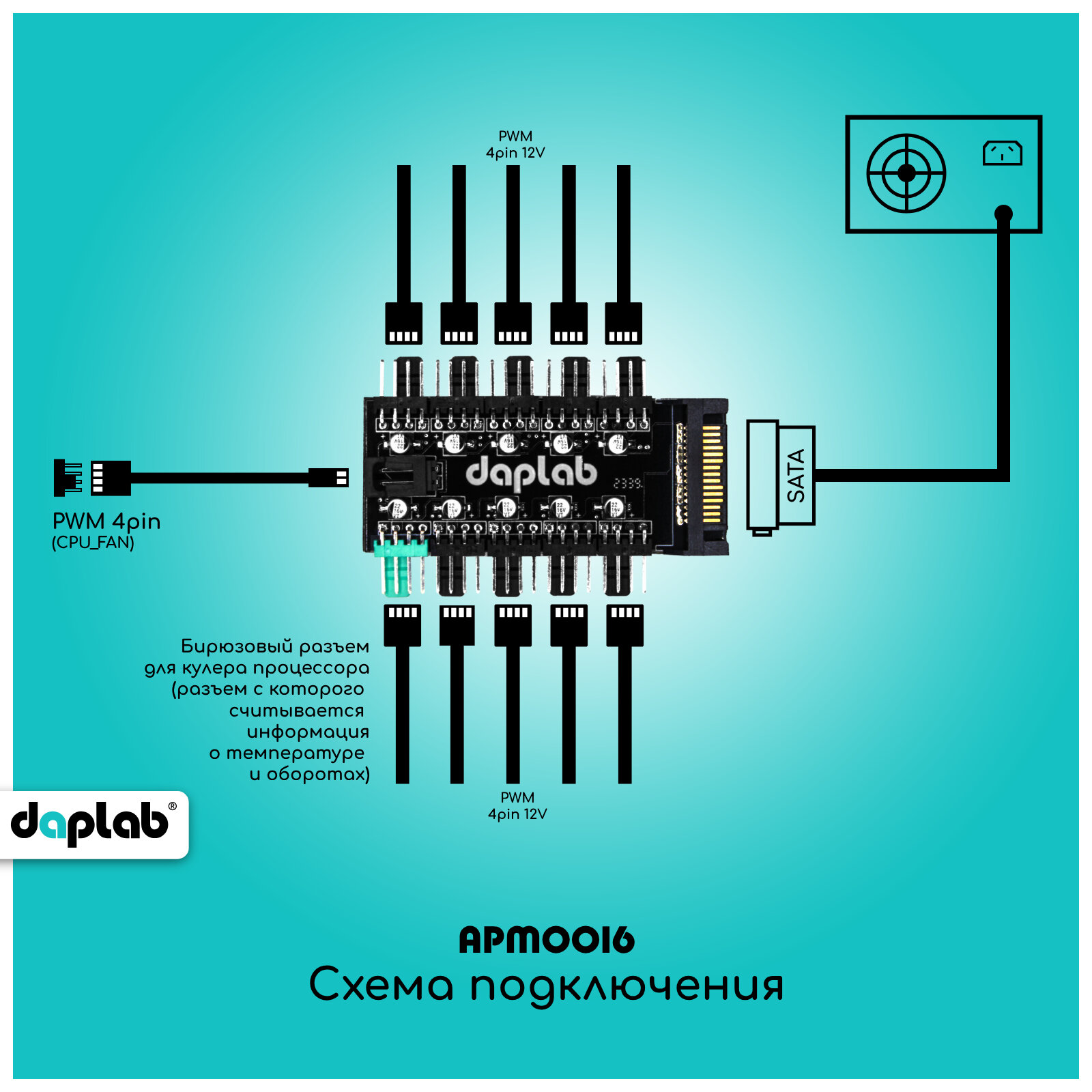 Реобас / Разветвитель на 10 кулеров с регулировкой через ШИМ (FAN PWM)/хаб для вентиляторов 4pin (SATA)