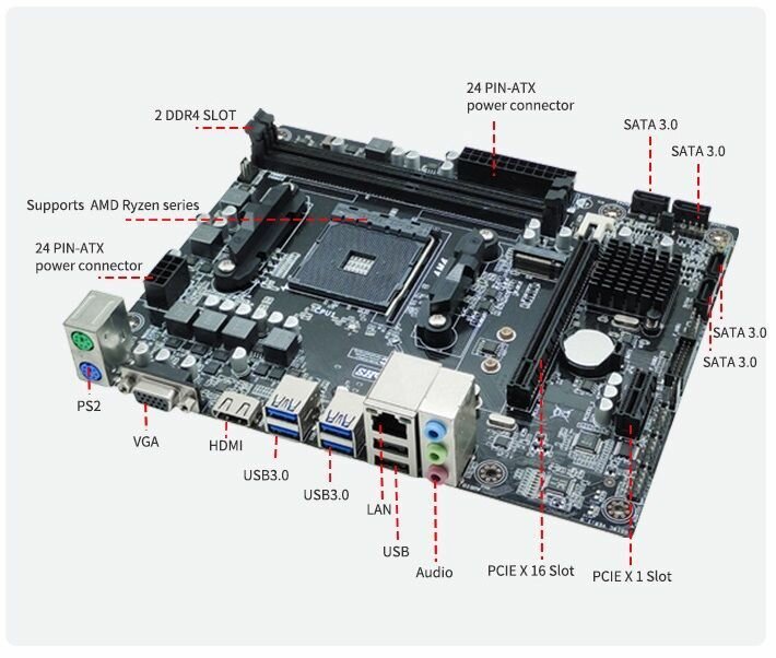 Материнская плата Micro ATX A320 AM4 AMD, DDR4 до 32 ГБ, socket AMD Ryzen 3000-5000 интересное:
